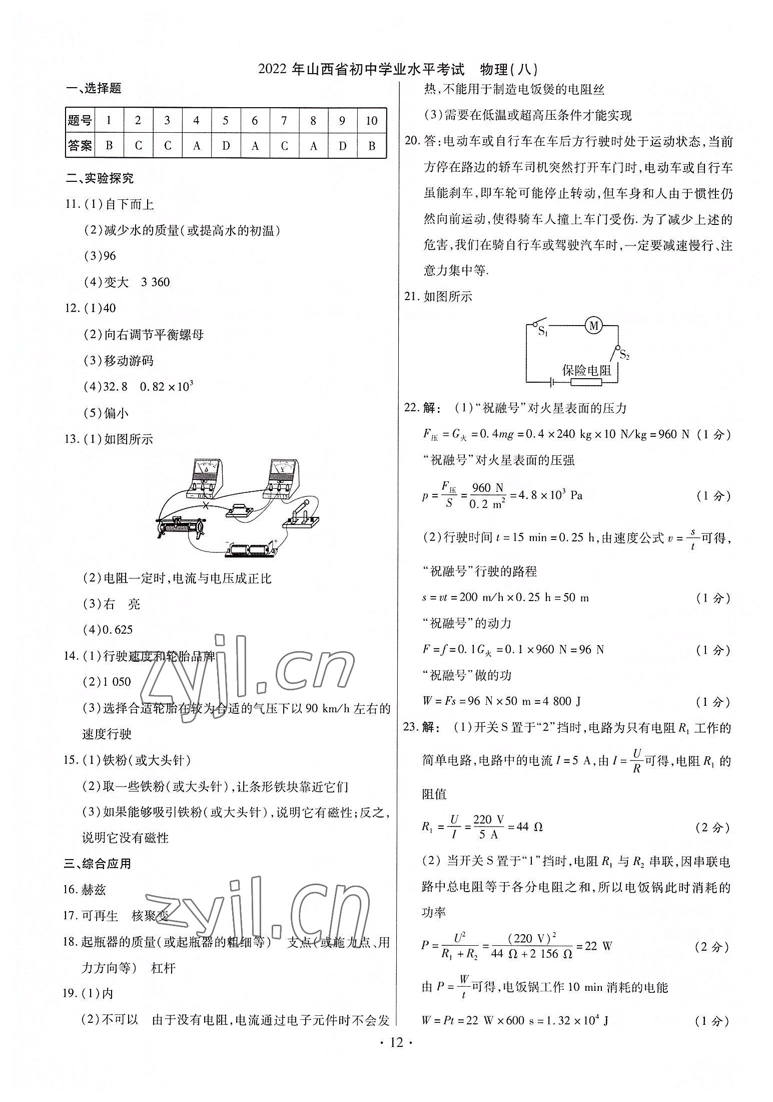 《2022年中考仿真卷物理山西专版》