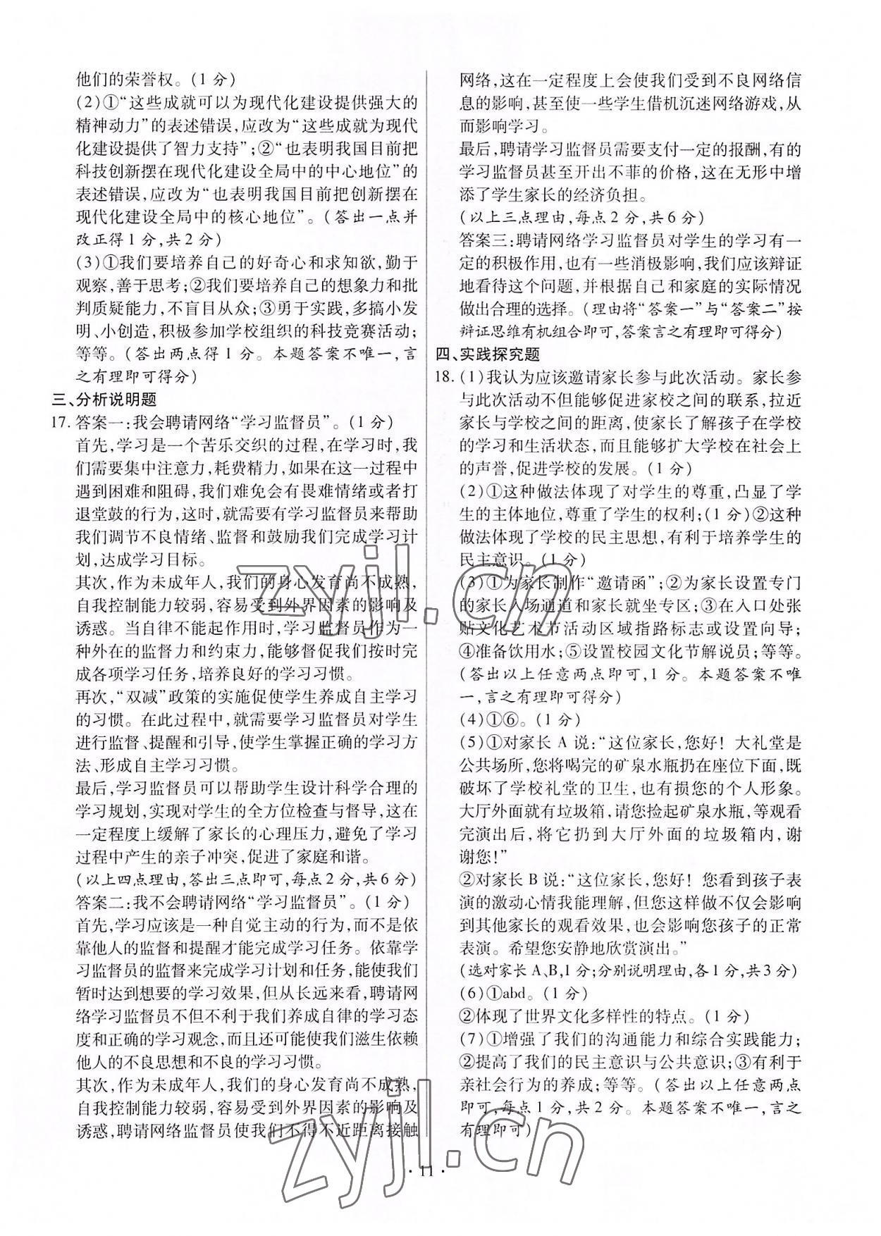 注:目前有些书本章节名称可能整理的还不是很完善,但都是按照顺序排列的,请同学们按照顺序仔细查找。练习册 2022年中考仿真卷道德与法治山西专版 答案主要是用来给同学们做完题方便对答案用的,请勿直接抄袭。