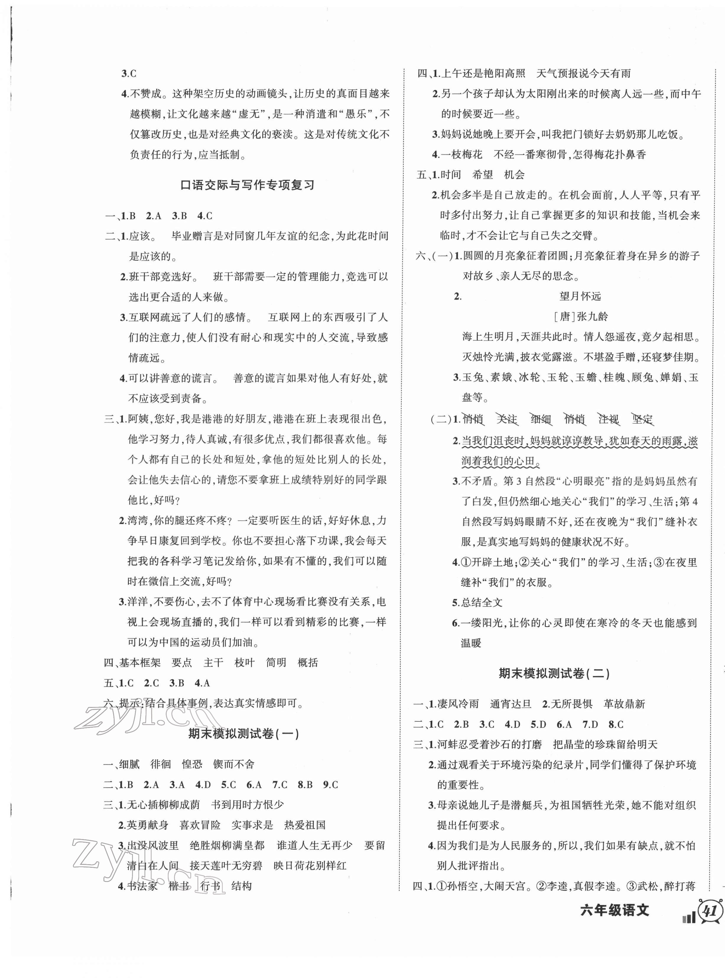 注:目前有些书本章节名称可能整理的还不是很完善,但都是按照顺序排列的,请同学们按照顺序仔细查找。练习册 2022年状元成才路创新名卷六年级语文下册人教版 答案主要是用来给同学们做完题方便对答案用的,请勿直接抄袭。