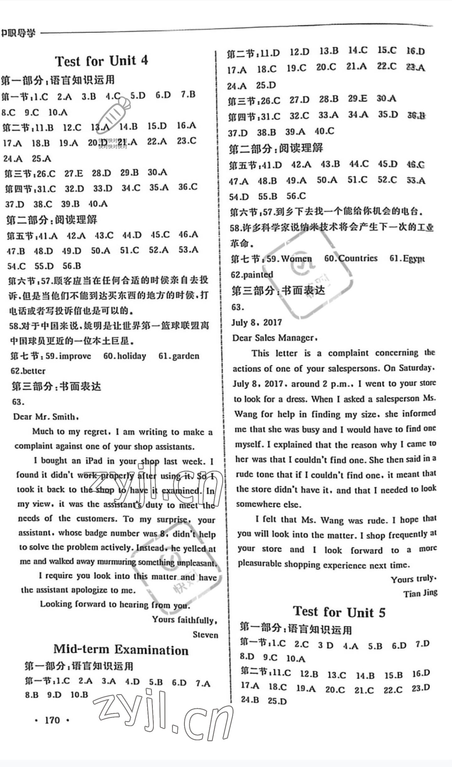 注:目前有些书本章节名称可能整理的还不是很完善,但都是按照顺序排列的,请同学们按照顺序仔细查找。练习册 2022年中职英语导学与同步训练3 答案主要是用来给同学们做完题方便对答案用的,请勿直接抄袭。