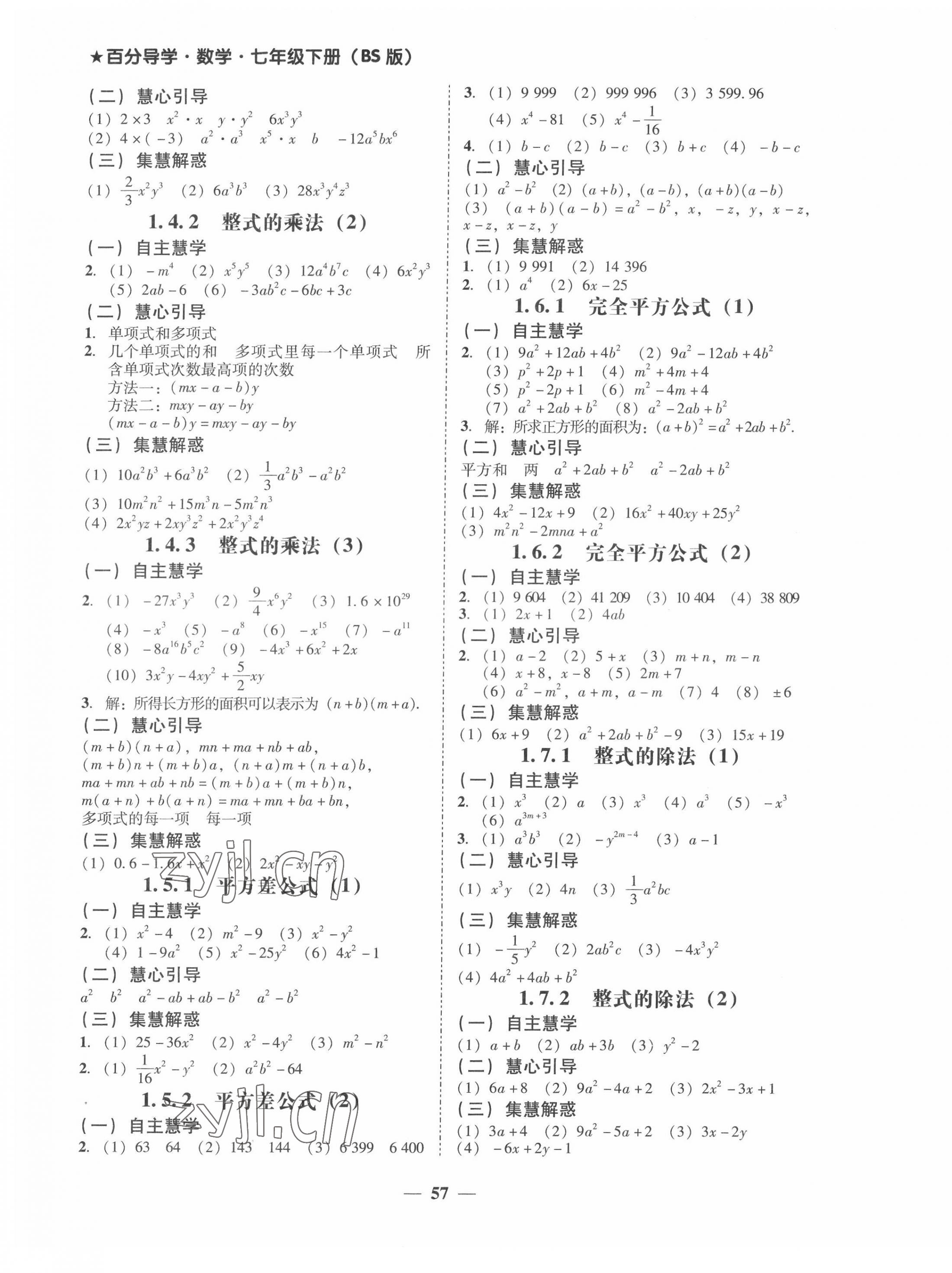 注:目前有些书本章节名称可能整理的还不是很完善,但都是按照顺序排列的,请同学们按照顺序仔细查找。练习册 2022年百分导学七年级数学下册北师大版 答案主要是用来给同学们做完题方便对答案用的,请勿直接抄袭。