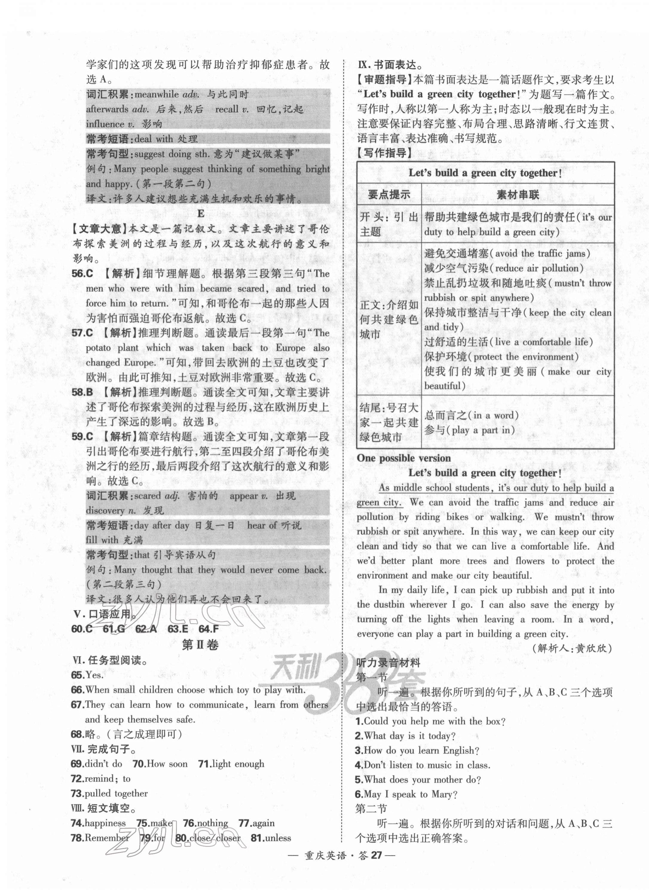 注:目前有些书本章节名称可能整理的还不是很完善,但都是按照顺序排列的,请同学们按照顺序仔细查找。练习册 2022年天利38套中考试题精选英语重庆专版 答案主要是用来给同学们做完题方便对答案用的,请勿直接抄袭。