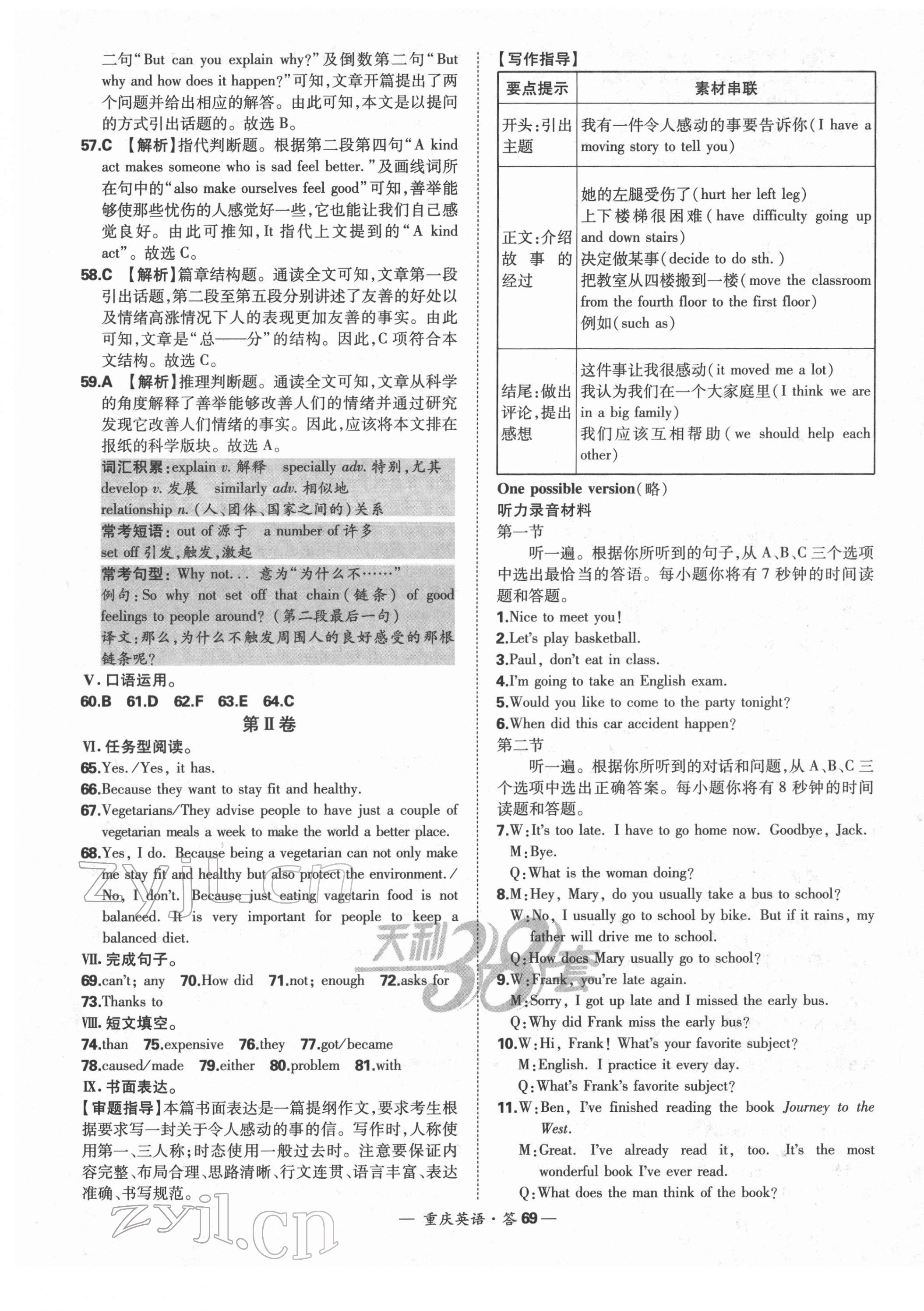 注:目前有些书本章节名称可能整理的还不是很完善,但都是按照顺序排列的,请同学们按照顺序仔细查找。练习册 2022年天利38套中考试题精选英语重庆专版 答案主要是用来给同学们做完题方便对答案用的,请勿直接抄袭。
