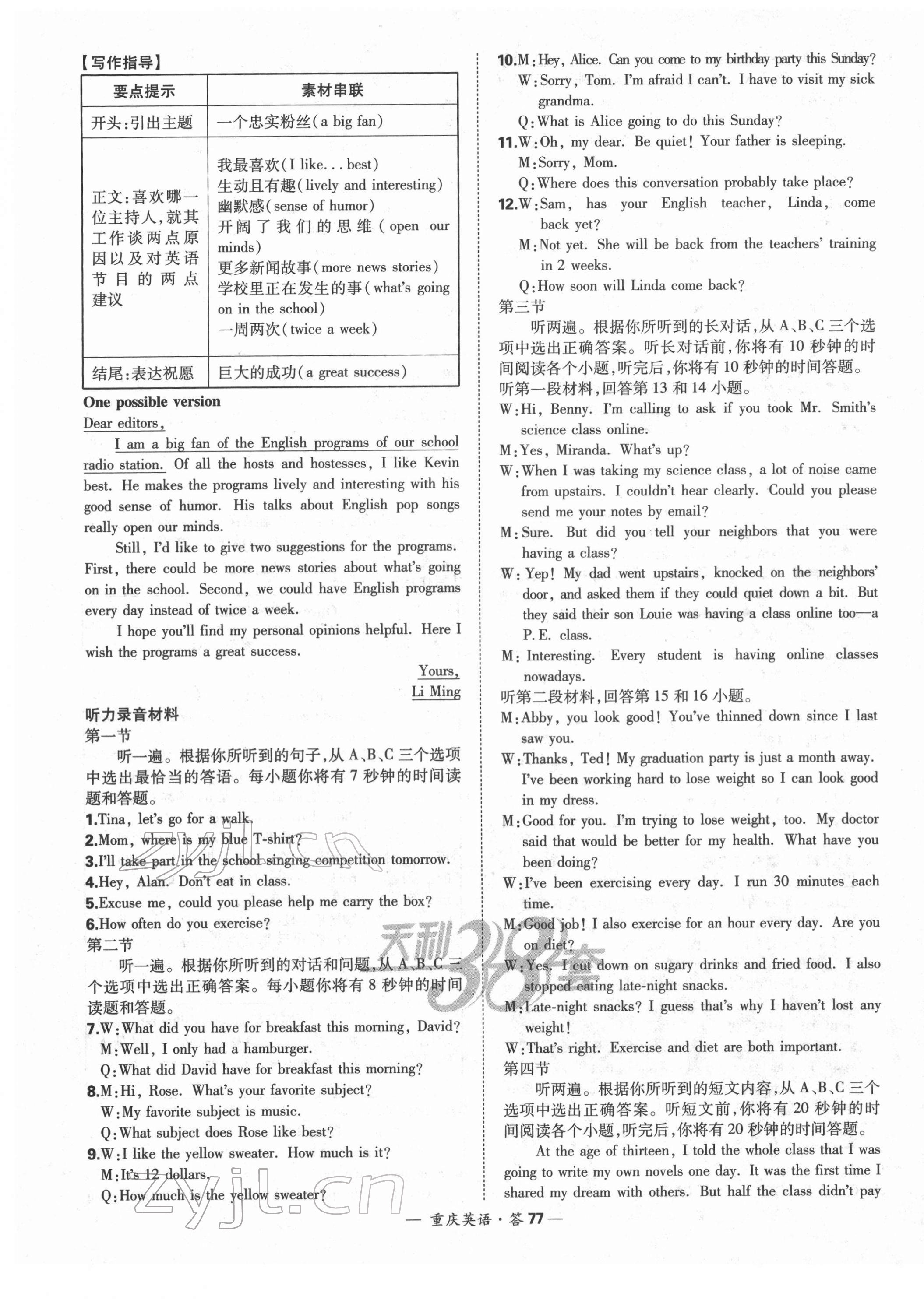 注:目前有些书本章节名称可能整理的还不是很完善,但都是按照顺序排列的,请同学们按照顺序仔细查找。练习册 2022年天利38套中考试题精选英语重庆专版 答案主要是用来给同学们做完题方便对答案用的,请勿直接抄袭。