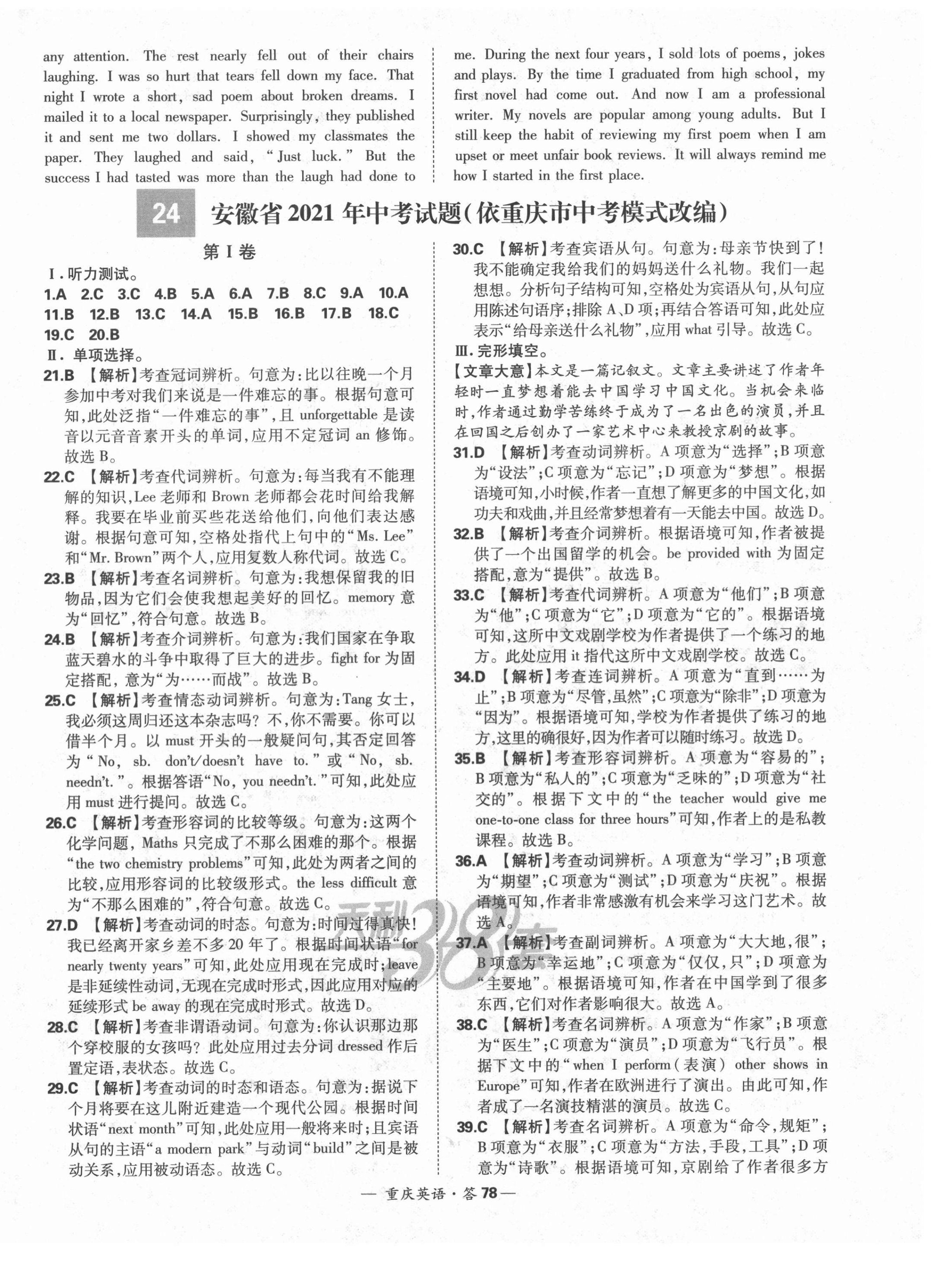 注:目前有些书本章节名称可能整理的还不是很完善,但都是按照顺序排列的,请同学们按照顺序仔细查找。练习册 2022年天利38套中考试题精选英语重庆专版 答案主要是用来给同学们做完题方便对答案用的,请勿直接抄袭。