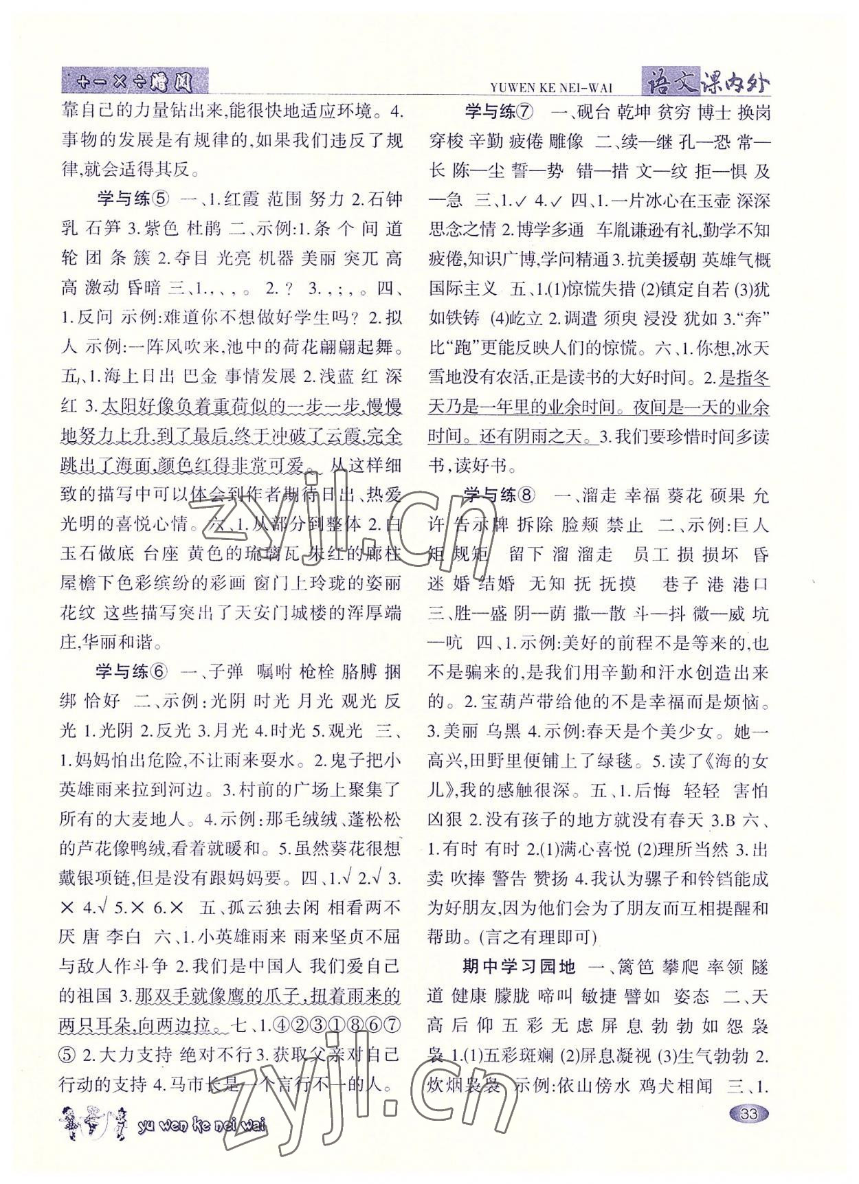 注:目前有些书本章节名称可能整理的还不是很完善,但都是按照顺序排列的,请同学们按照顺序仔细查找。练习册 2022年语文课内外四年级下册 答案主要是用来给同学们做完题方便对答案用的,请勿直接抄袭。