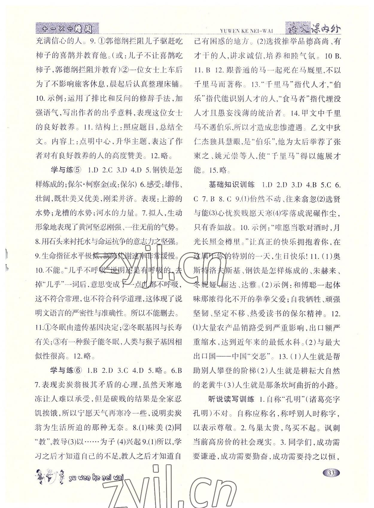 注:目前有些书本章节名称可能整理的还不是很完善,但都是按照顺序排列的,请同学们按照顺序仔细查找。练习册 2022年语文课内外八年级下册 答案主要是用来给同学们做完题方便对答案用的,请勿直接抄袭。