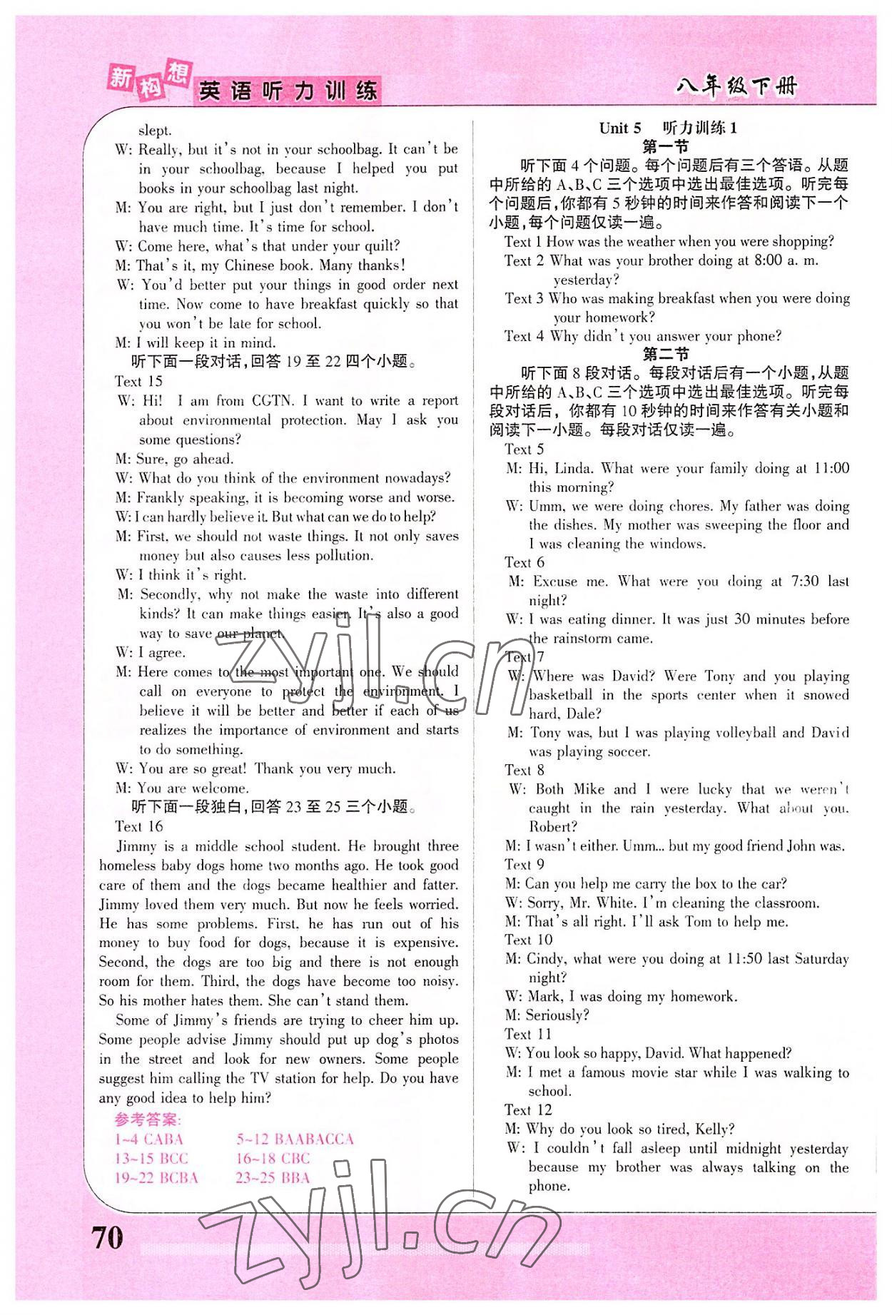 注:目前有些书本章节名称可能整理的还不是很完善,但都是按照顺序排列的,请同学们按照顺序仔细查找。练习册 2022年新构想英语听力训练八年级英语下册人教版 答案主要是用来给同学们做完题方便对答案用的,请勿直接抄袭。