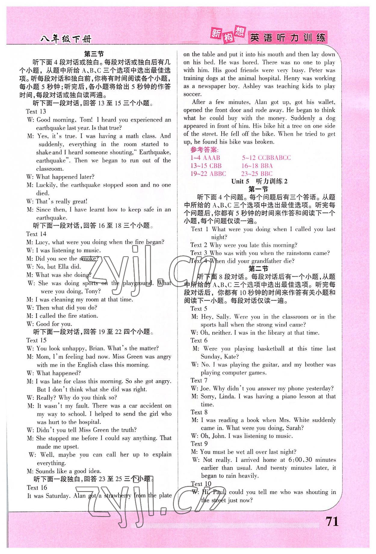 注:目前有些书本章节名称可能整理的还不是很完善,但都是按照顺序排列的,请同学们按照顺序仔细查找。练习册 2022年新构想英语听力训练八年级英语下册人教版 答案主要是用来给同学们做完题方便对答案用的,请勿直接抄袭。
