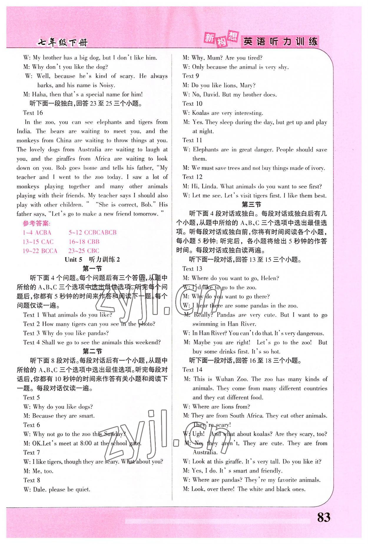 注:目前有些书本章节名称可能整理的还不是很完善,但都是按照顺序排列的,请同学们按照顺序仔细查找。练习册 2022年新构想英语听力训练七年级英语下册人教版 答案主要是用来给同学们做完题方便对答案用的,请勿直接抄袭。