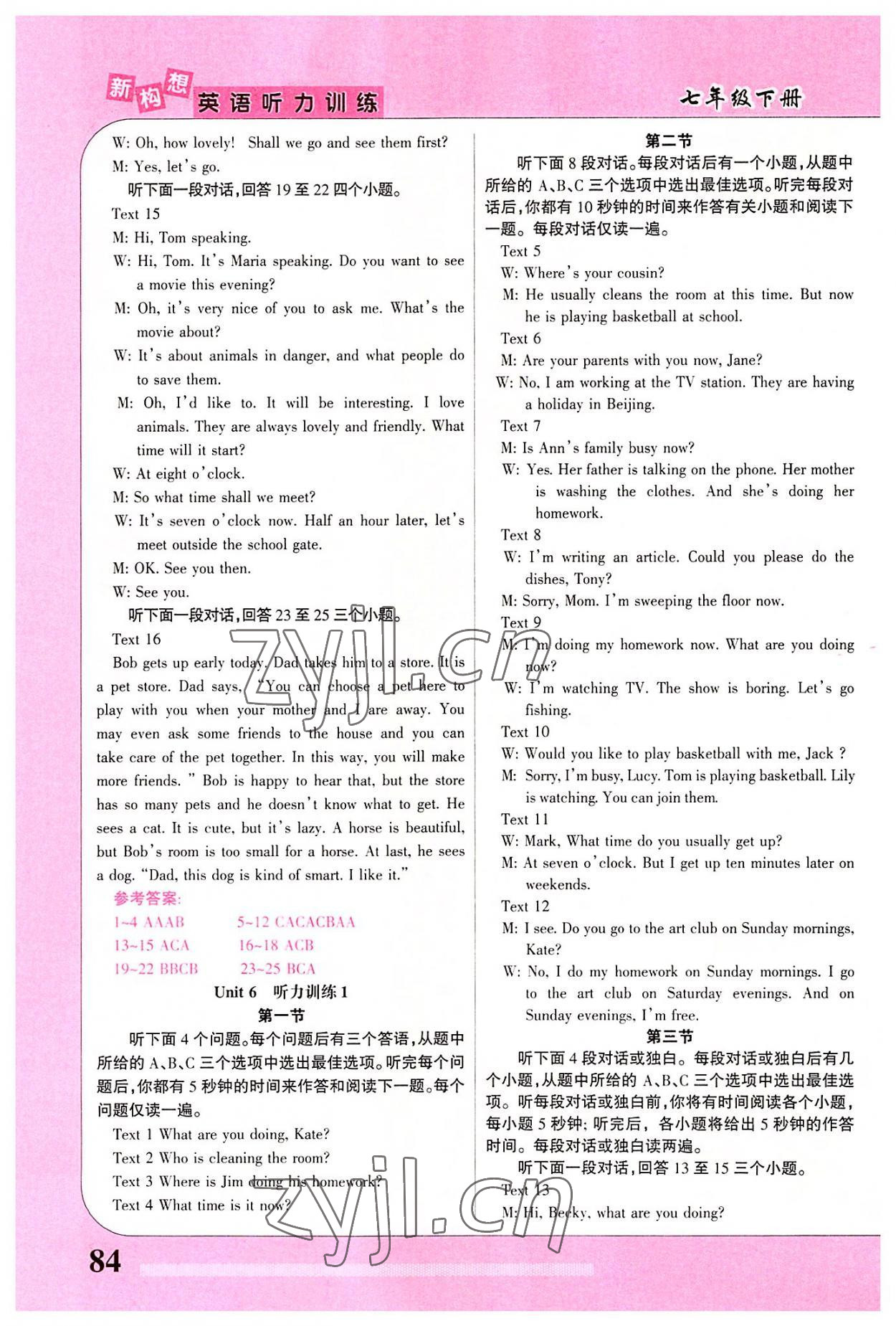 注:目前有些书本章节名称可能整理的还不是很完善,但都是按照顺序排列的,请同学们按照顺序仔细查找。练习册 2022年新构想英语听力训练七年级英语下册人教版 答案主要是用来给同学们做完题方便对答案用的,请勿直接抄袭。