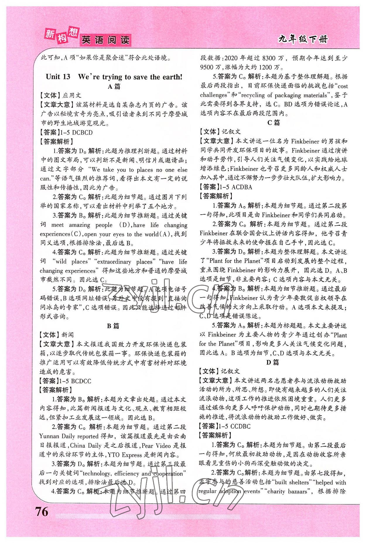 注:目前有些书本章节名称可能整理的还不是很完善,但都是按照顺序排列的,请同学们按照顺序仔细查找。练习册 2022年新构想英语阅读训练九年级下册人教版 答案主要是用来给同学们做完题方便对答案用的,请勿直接抄袭。