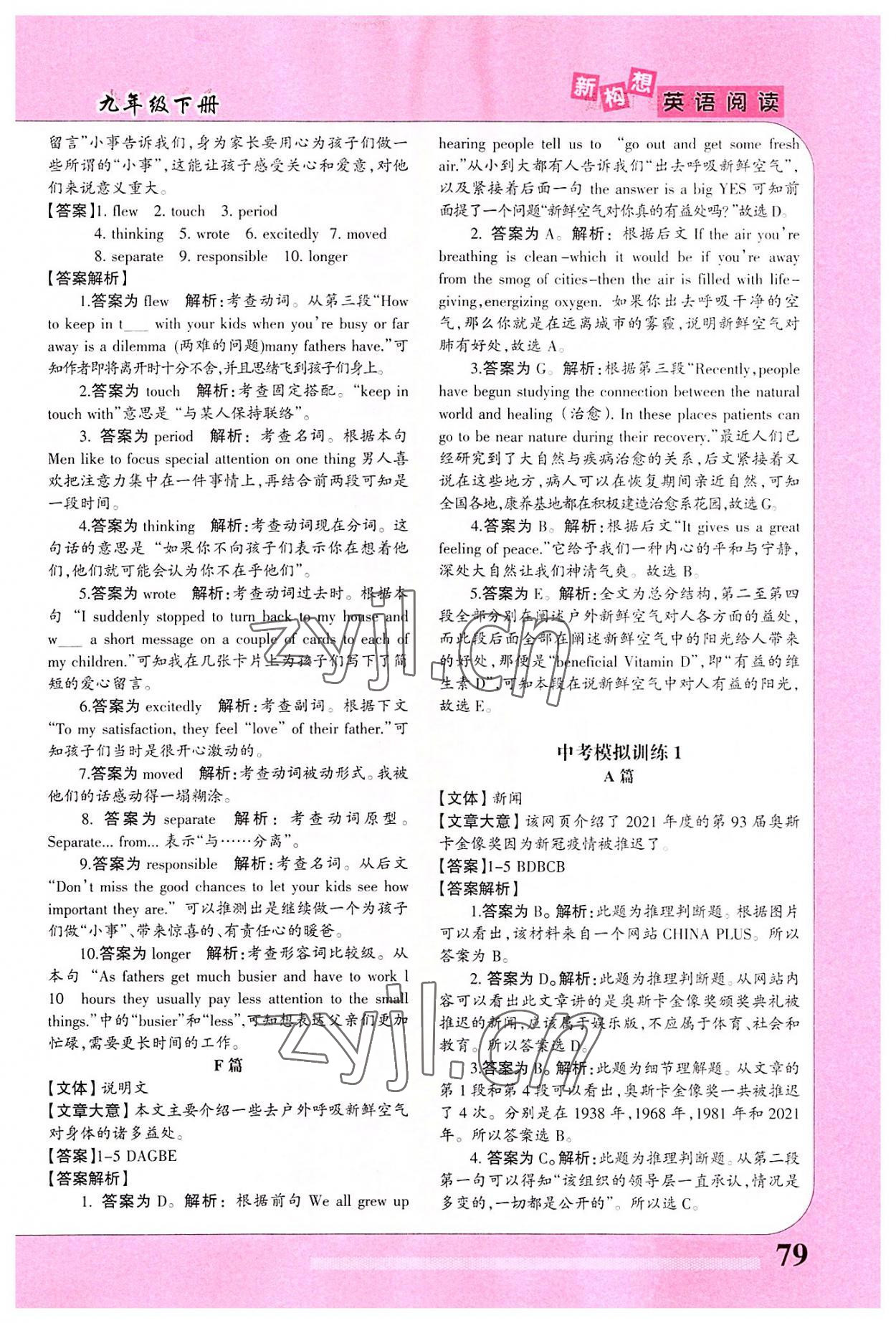 注:目前有些书本章节名称可能整理的还不是很完善,但都是按照顺序排列的,请同学们按照顺序仔细查找。练习册 2022年新构想英语阅读训练九年级下册人教版 答案主要是用来给同学们做完题方便对答案用的,请勿直接抄袭。