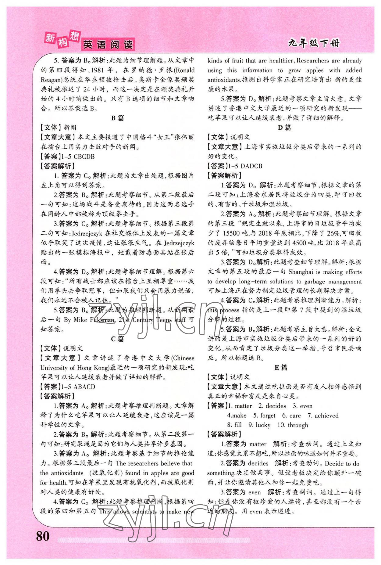 注:目前有些书本章节名称可能整理的还不是很完善,但都是按照顺序排列的,请同学们按照顺序仔细查找。练习册 2022年新构想英语阅读训练九年级下册人教版 答案主要是用来给同学们做完题方便对答案用的,请勿直接抄袭。