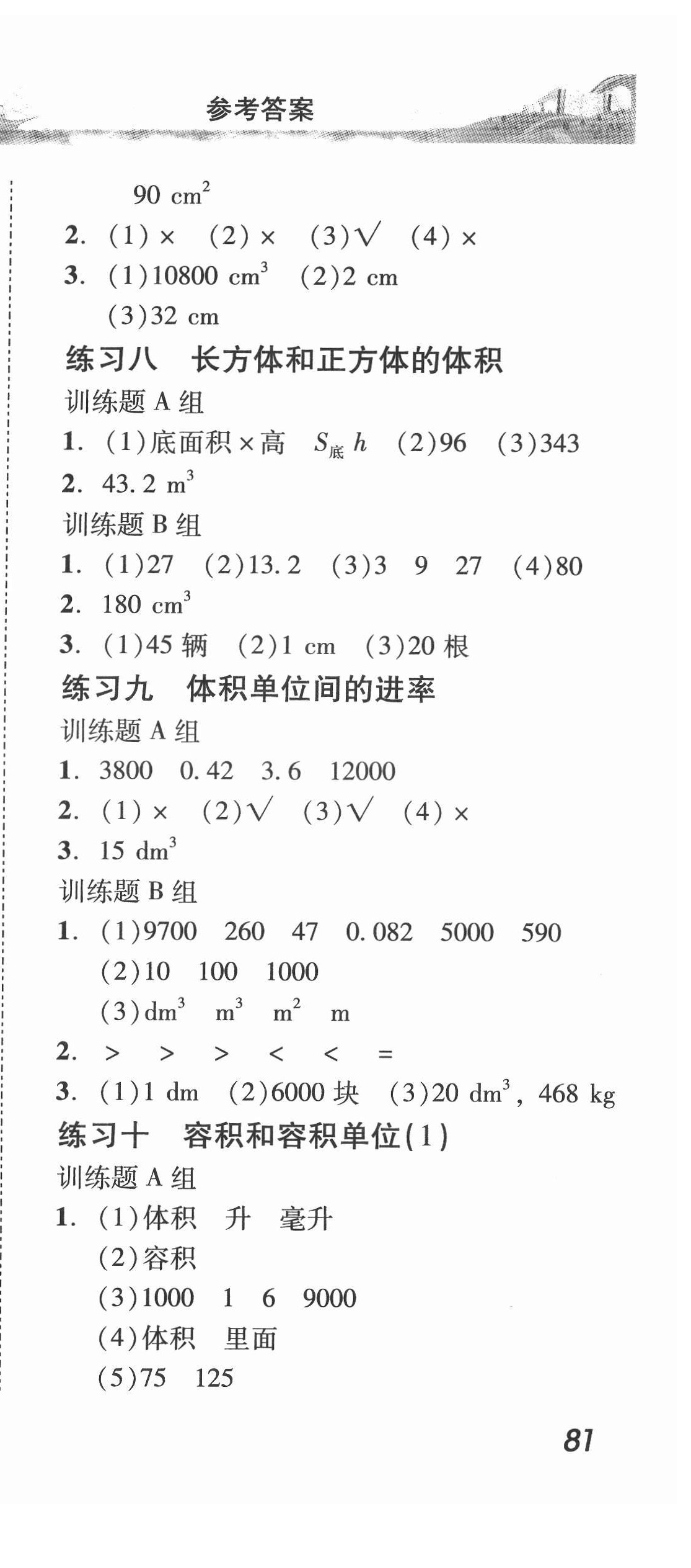 注:目前有些书本章节名称可能整理的还不是很完善,但都是按照顺序排列的,请同学们按照顺序仔细查找。练习册 2022年培生新课堂同步训练与单元测评五年级数学下册人教版 答案主要是用来给同学们做完题方便对答案用的,请勿直接抄袭。