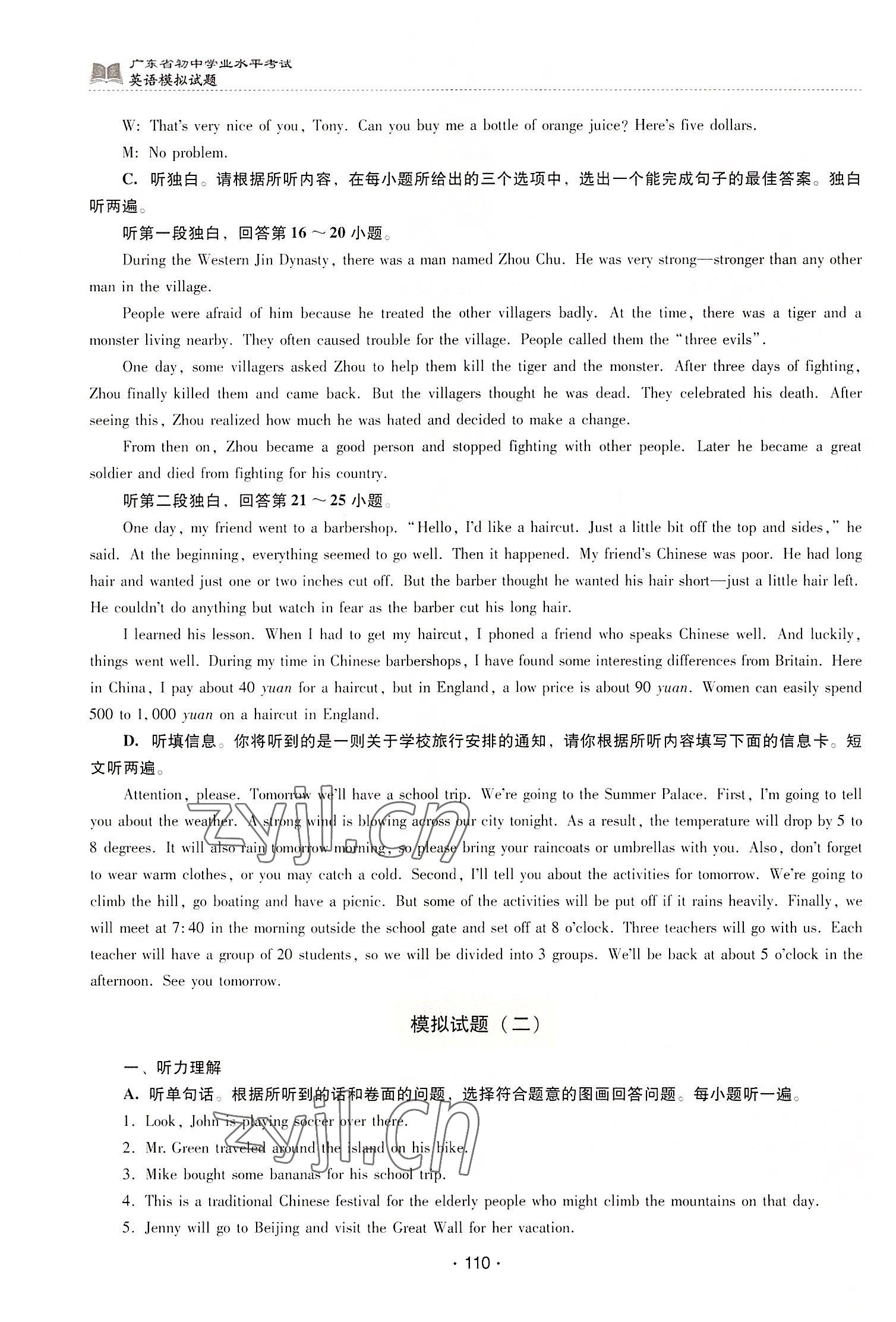 注:目前有些书本章节名称可能整理的还不是很完善,但都是按照顺序排列的,请同学们按照顺序仔细查找。练习册 2022年广东省初中学业水平考试英语模拟试题 答案主要是用来给同学们做完题方便对答案用的,请勿直接抄袭。