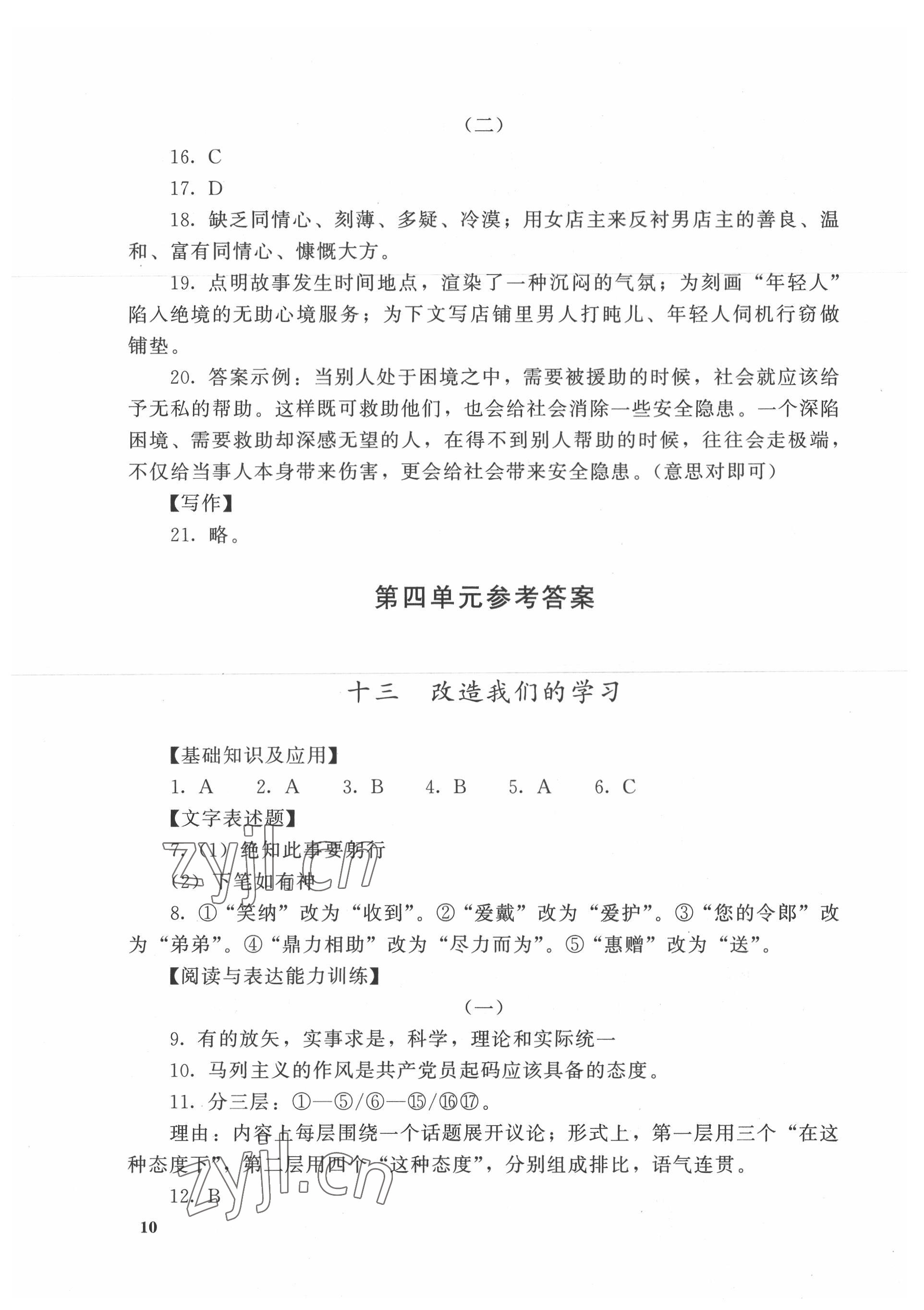 注:目前有些书本章节名称可能整理的还不是很完善,但都是按照顺序排列的,请同学们按照顺序仔细查找。练习册 2022年课课练基础模块高等教育出版社中职语文上册高教版 答案主要是用来给同学们做完题方便对答案用的,请勿直接抄袭。