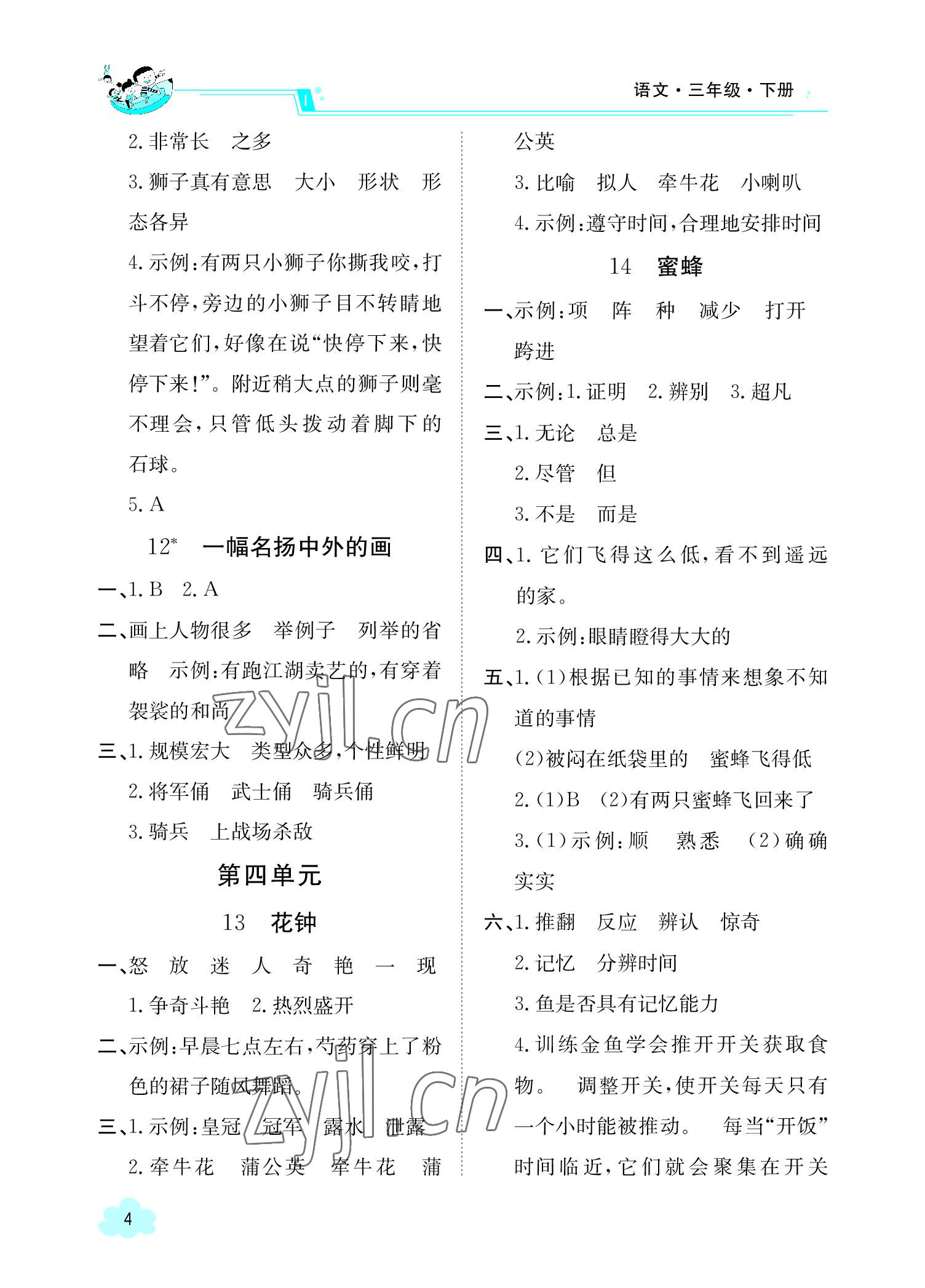 注:目前有些书本章节名称可能整理的还不是很完善,但都是按照顺序排列的,请同学们按照顺序仔细查找。练习册 2022年三段六步导学案三年级语文下册人教版 答案主要是用来给同学们做完题方便对答案用的,请勿直接抄袭。