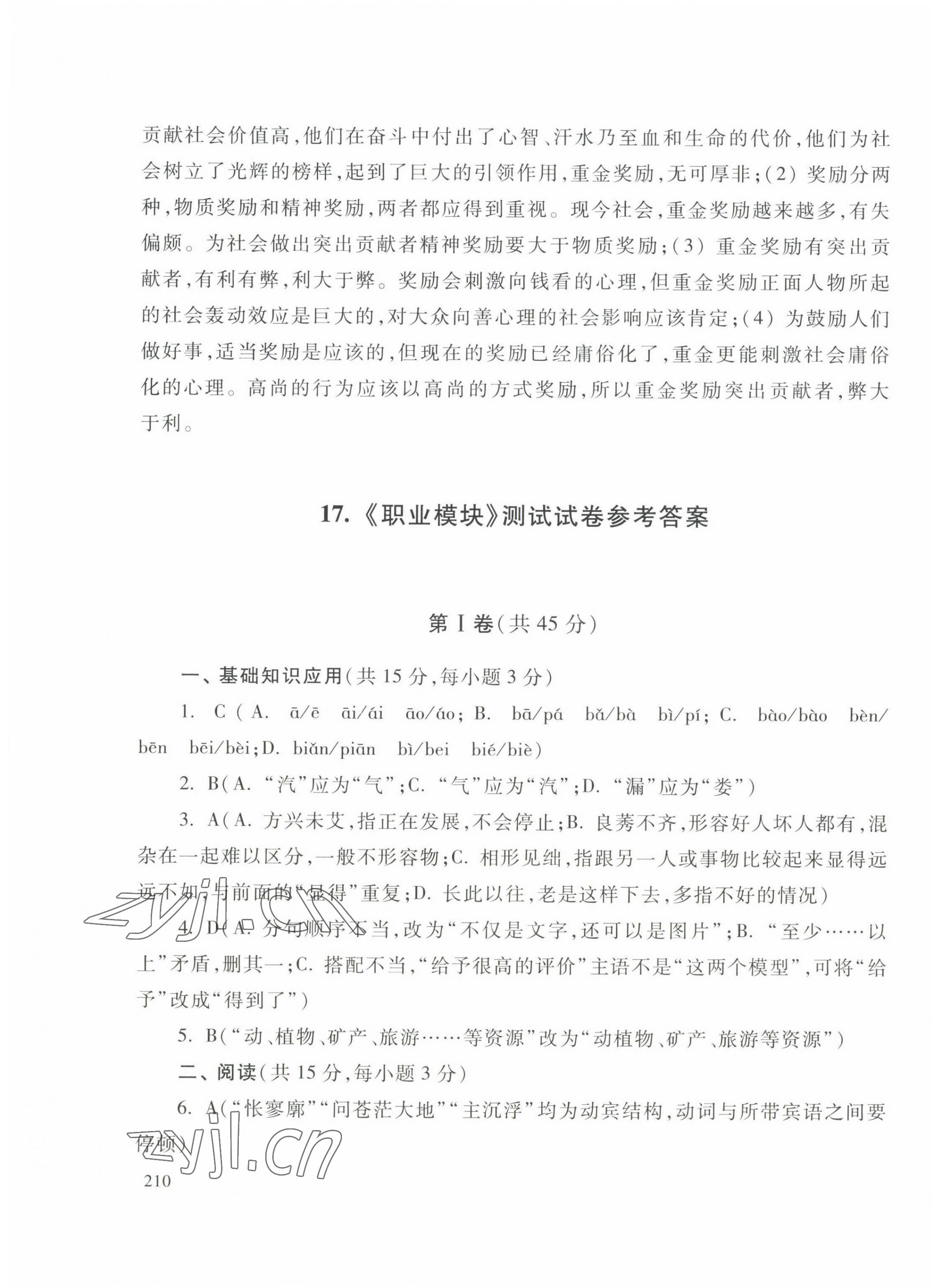 注:目前有些书本章节名称可能整理的还不是很完善,但都是按照顺序排列的,请同学们按照顺序仔细查找。练习册 2022年中职生对口升学总复习总结练习册高等教育出版社中职语文高教版 答案主要是用来给同学们做完题方便对答案用的,请勿直接抄袭。