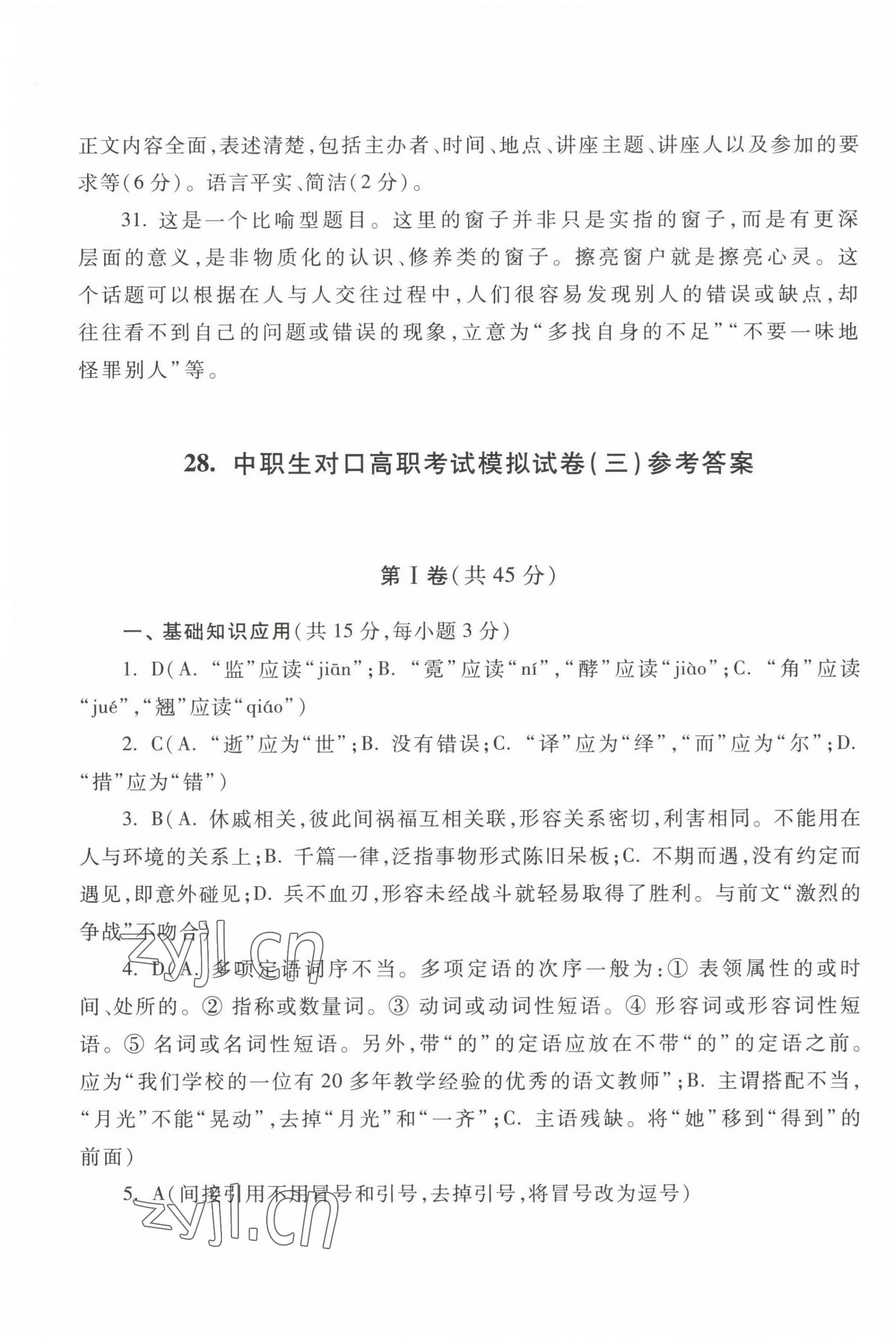 2022年中职生对口升学总复习总结练习册高等教育出版社中职语文高教版