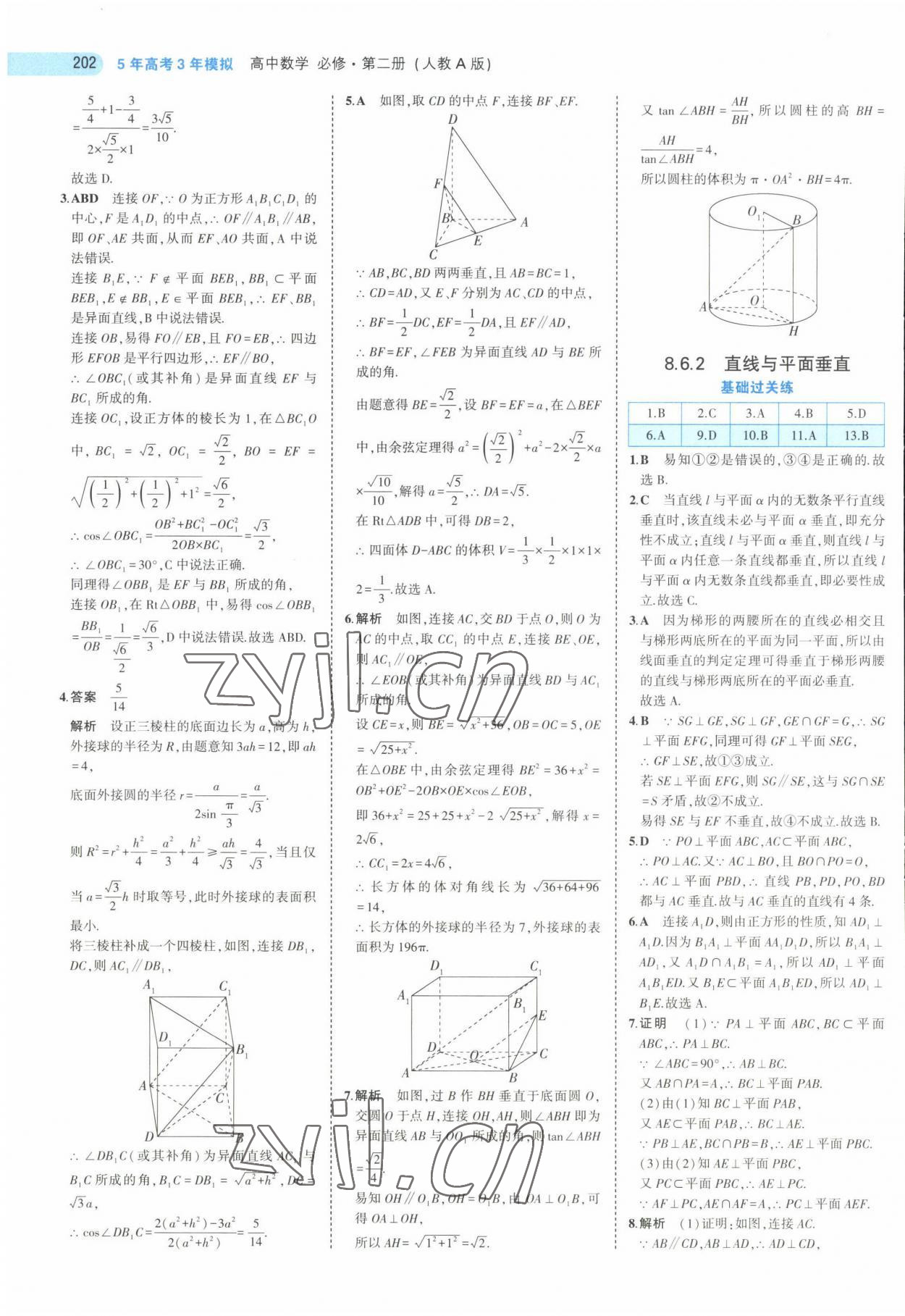 2022年5年高考3年模拟高中数学必修第二册人教版