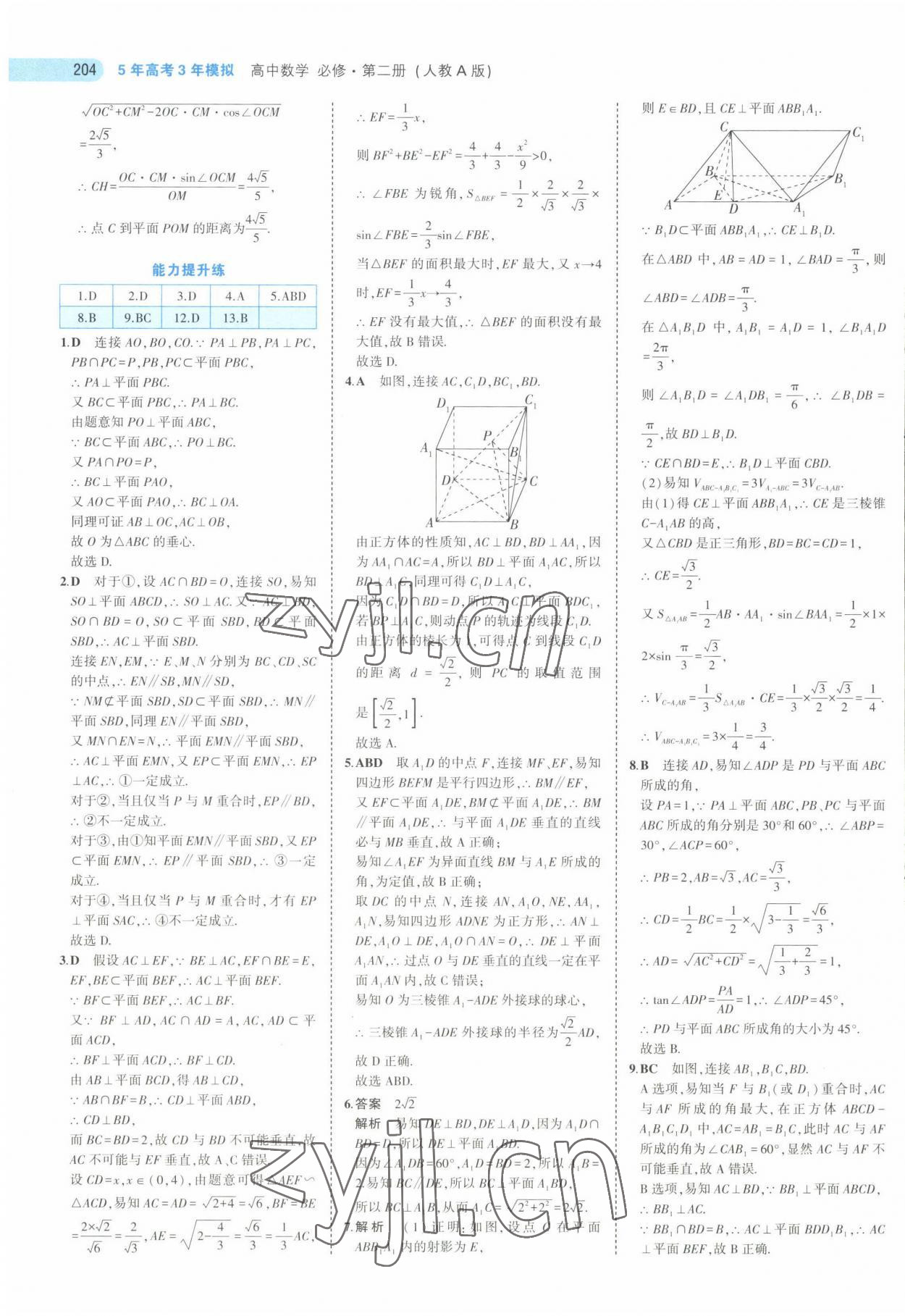 2022年5年高考3年模拟高中数学必修第二册人教版