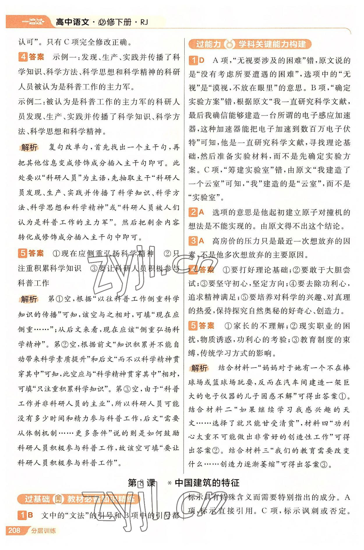 注:目前有些书本章节名称可能整理的还不是很完善,但都是按照顺序排列的,请同学们按照顺序仔细查找。练习册 2022年一遍过高中语文必修下册人教版 答案主要是用来给同学们做完题方便对答案用的,请勿直接抄袭。
