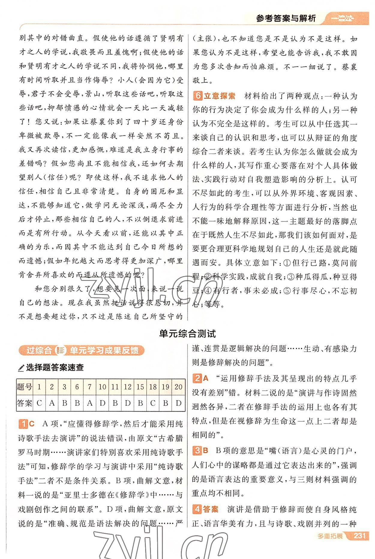 注:目前有些书本章节名称可能整理的还不是很完善,但都是按照顺序排列的,请同学们按照顺序仔细查找。练习册 2022年一遍过高中语文必修下册人教版 答案主要是用来给同学们做完题方便对答案用的,请勿直接抄袭。