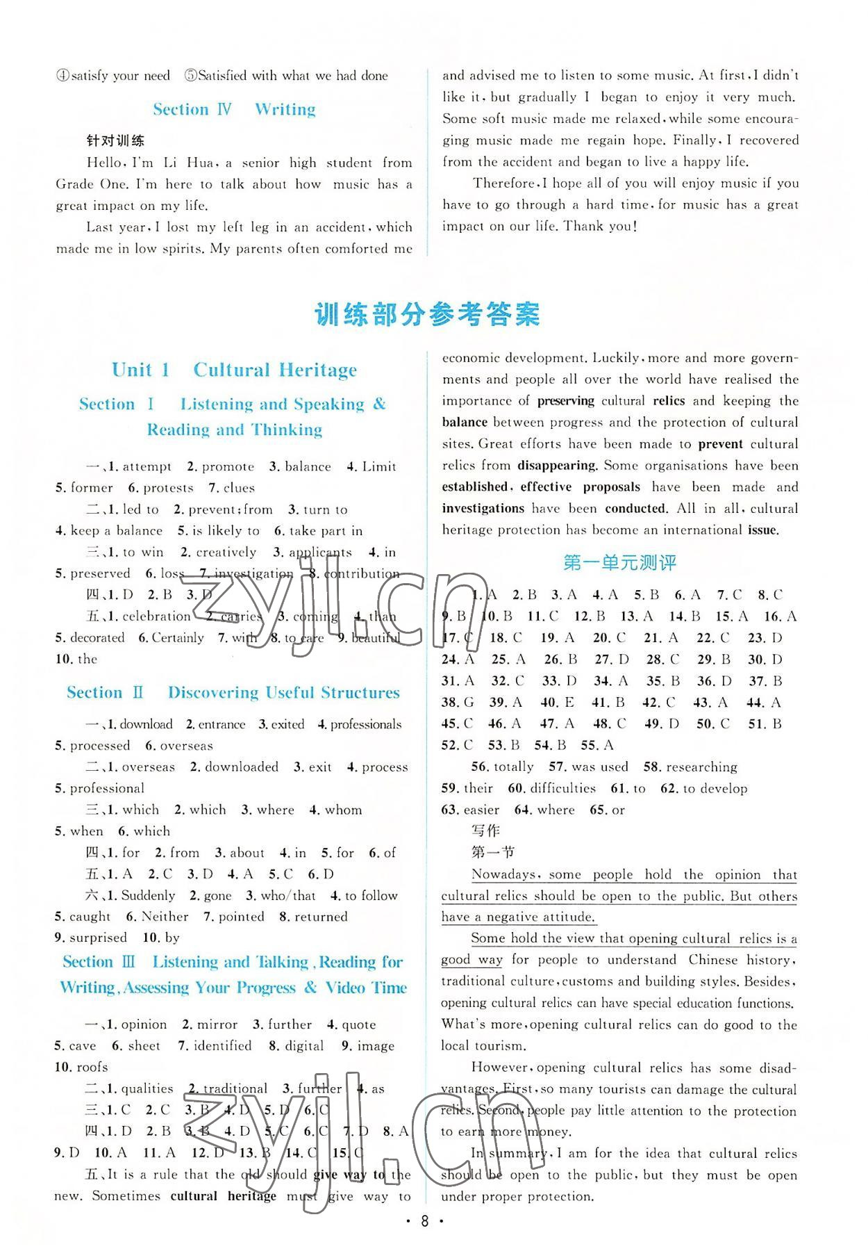 注:目前有些书本章节名称可能整理的还不是很完善,但都是按照顺序排列的,请同学们按照顺序仔细查找。练习册 2022年同步测控优化设计高中英语必修第二册福建专版 答案主要是用来给同学们做完题方便对答案用的,请勿直接抄袭。