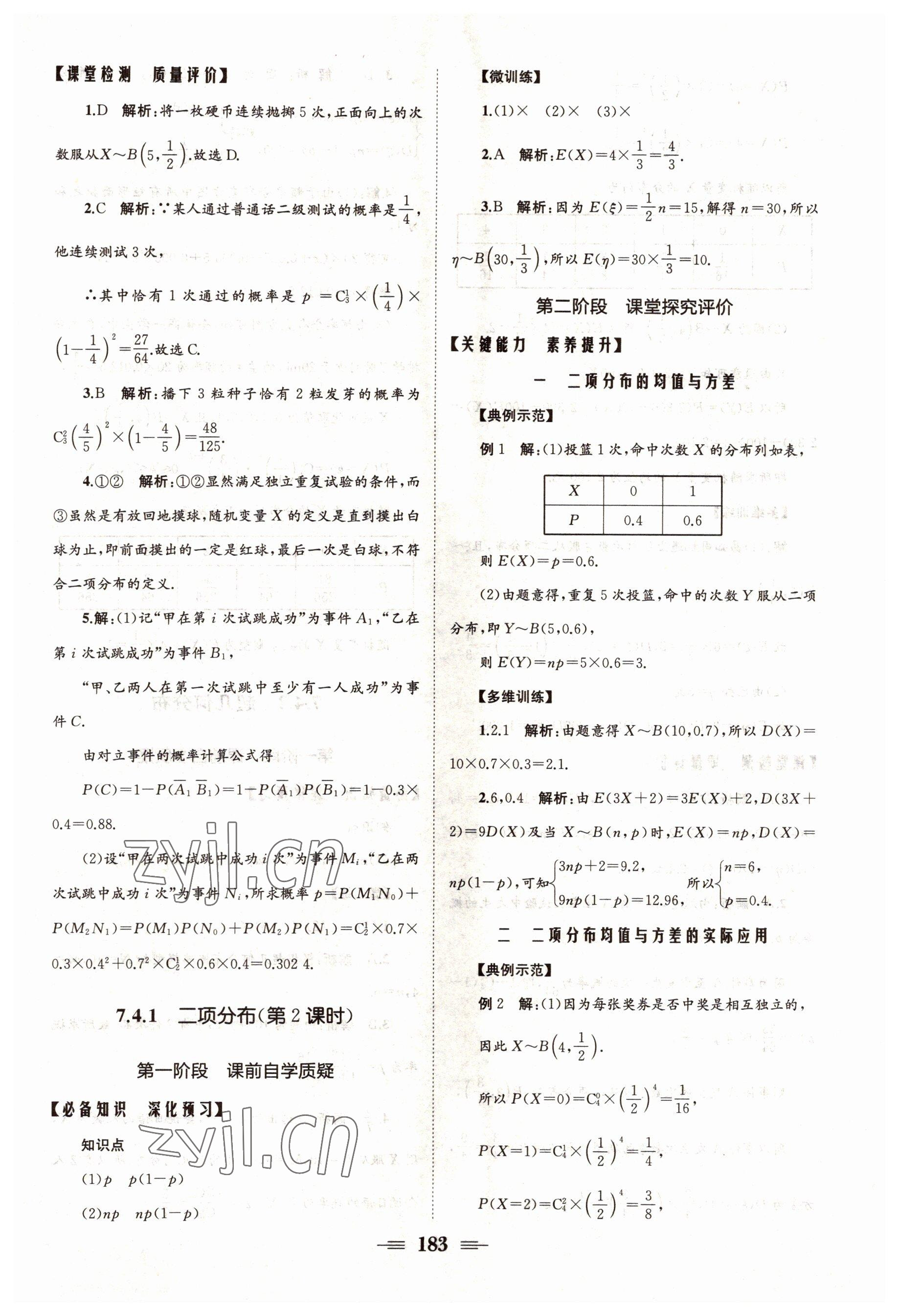 2022年长江作业本同步练习册高中数学选择性必修第三册人教版