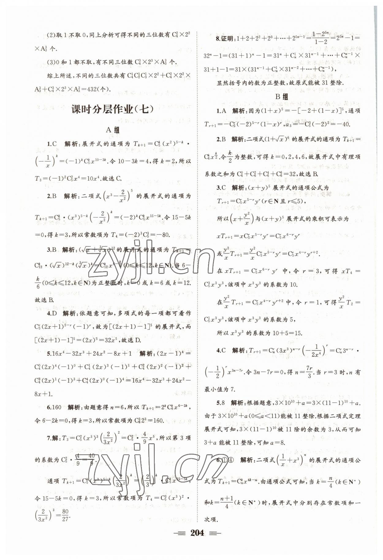 2022年长江作业本同步练习册高中数学选择性必修第三册人教版