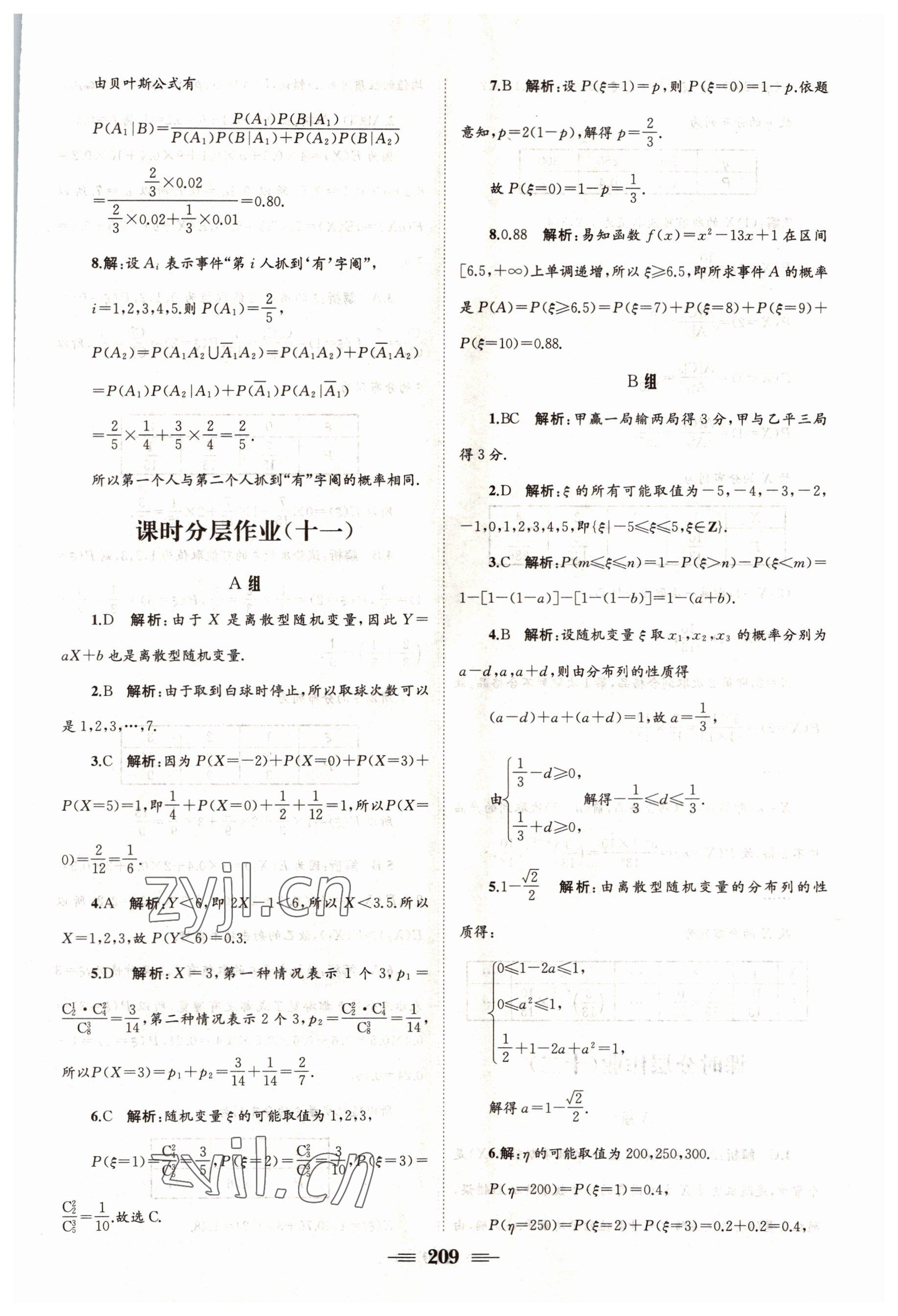 2022年长江作业本同步练习册高中数学选择性必修第三册人教版