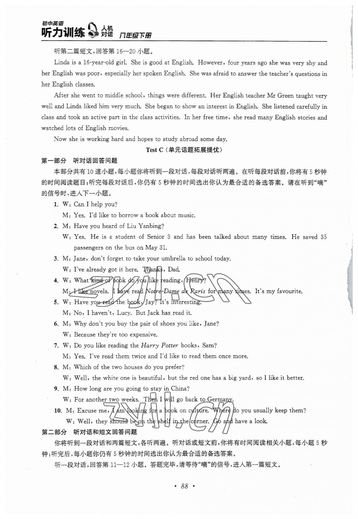 注:目前有些书本章节名称可能整理的还不是很完善,但都是按照顺序排列的,请同学们按照顺序仔细查找。练习册 2022年初中英语听力训练人机对话八年级下册译林版 答案主要是用来给同学们做完题方便对答案用的,请勿直接抄袭。