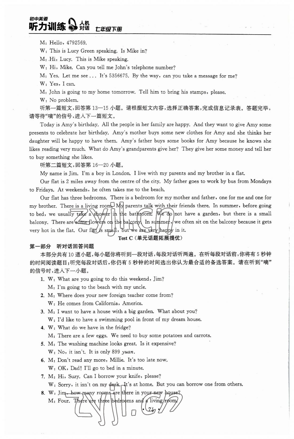 注:目前有些书本章节名称可能整理的还不是很完善,但都是按照顺序排列的,请同学们按照顺序仔细查找。练习册 2022年初中英语听力训练人机对话七年级下册译林版 答案主要是用来给同学们做完题方便对答案用的,请勿直接抄袭。