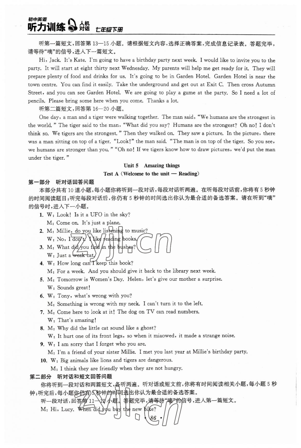 注:目前有些书本章节名称可能整理的还不是很完善,但都是按照顺序排列的,请同学们按照顺序仔细查找。练习册 2022年初中英语听力训练人机对话七年级下册译林版 答案主要是用来给同学们做完题方便对答案用的,请勿直接抄袭。