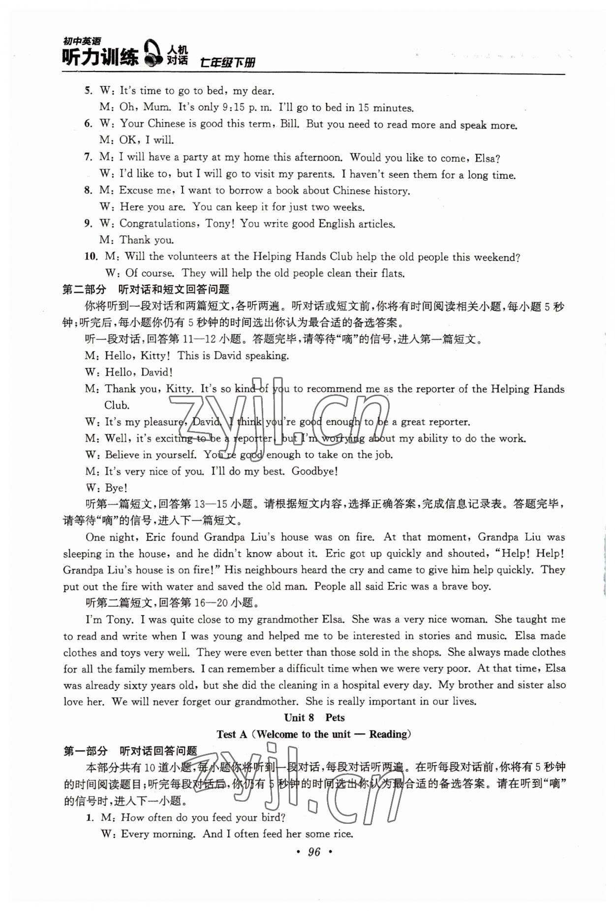 注:目前有些书本章节名称可能整理的还不是很完善,但都是按照顺序排列的,请同学们按照顺序仔细查找。练习册 2022年初中英语听力训练人机对话七年级下册译林版 答案主要是用来给同学们做完题方便对答案用的,请勿直接抄袭。