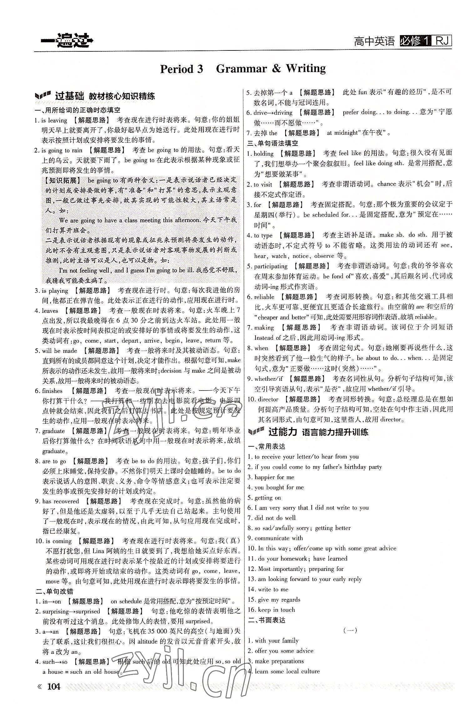 注:目前有些书本章节名称可能整理的还不是很完善,但都是按照顺序排列的,请同学们按照顺序仔细查找。练习册 2022年一遍过高中英语必修1人教版 答案主要是用来给同学们做完题方便对答案用的,请勿直接抄袭。