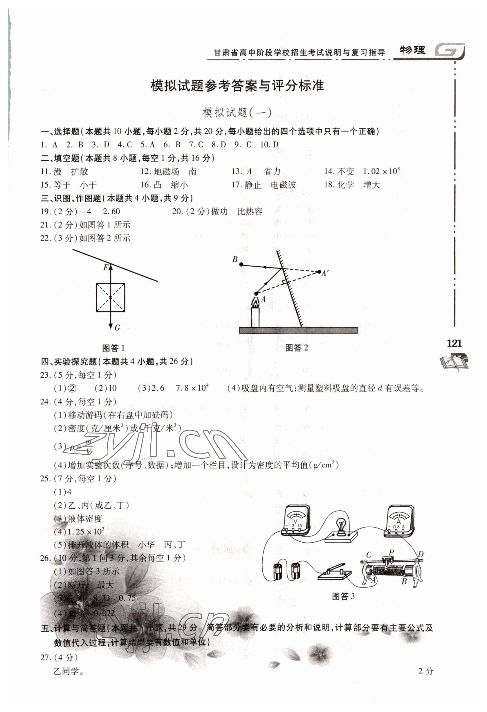 2022年甘肃省高中阶段学校招生考试说明与复习指导物理