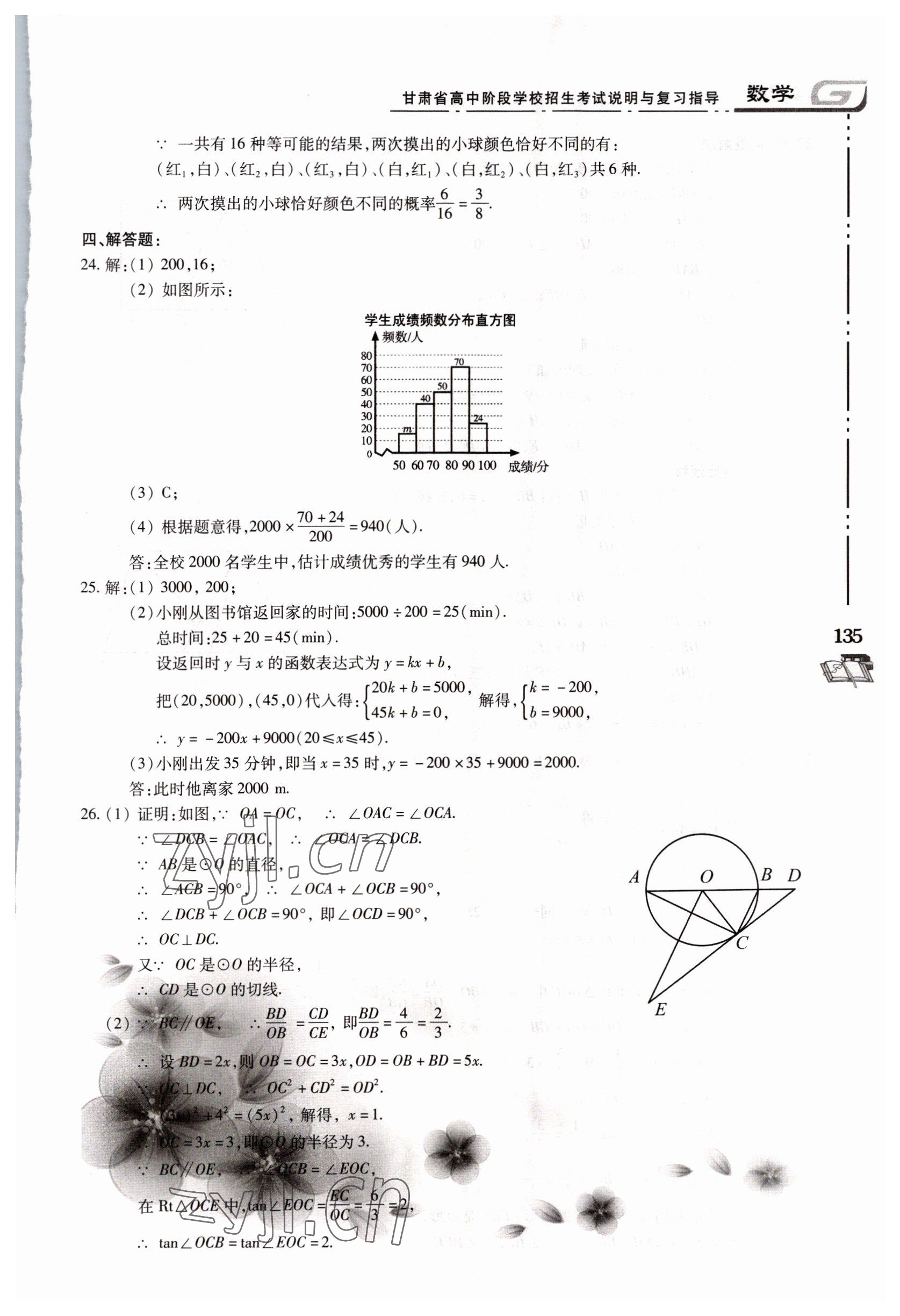 注:目前有些书本章节名称可能整理的还不是很完善,但都是按照顺序排列的,请同学们按照顺序仔细查找。练习册 2022年甘肃省高中阶段学校招生考试说明与复习指导数学 答案主要是用来给同学们做完题方便对答案用的,请勿直接抄袭。