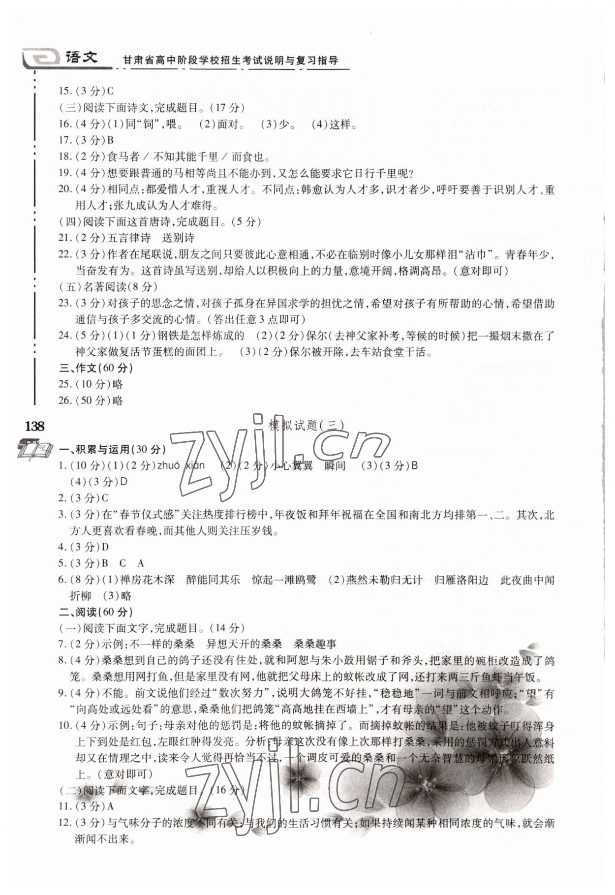 注:目前有些书本章节名称可能整理的还不是很完善,但都是按照顺序排列的,请同学们按照顺序仔细查找。练习册 2022年甘肃省高中阶段学校招生考试说明与复习指导语文 答案主要是用来给同学们做完题方便对答案用的,请勿直接抄袭。