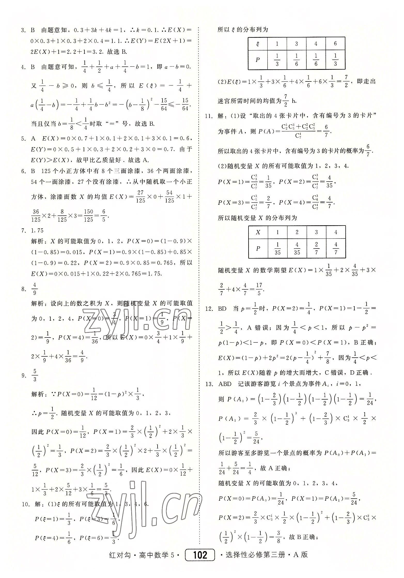 注:目前有些书本章节名称可能整理的还不是很完善,但都是按照顺序排列的,请同学们按照顺序仔细查找。练习册 2022年红对勾45分钟作业与单元评估高中数学选择性必修第三册人教版 答案主要是用来给同学们做完题方便对答案用的,请勿直接抄袭。