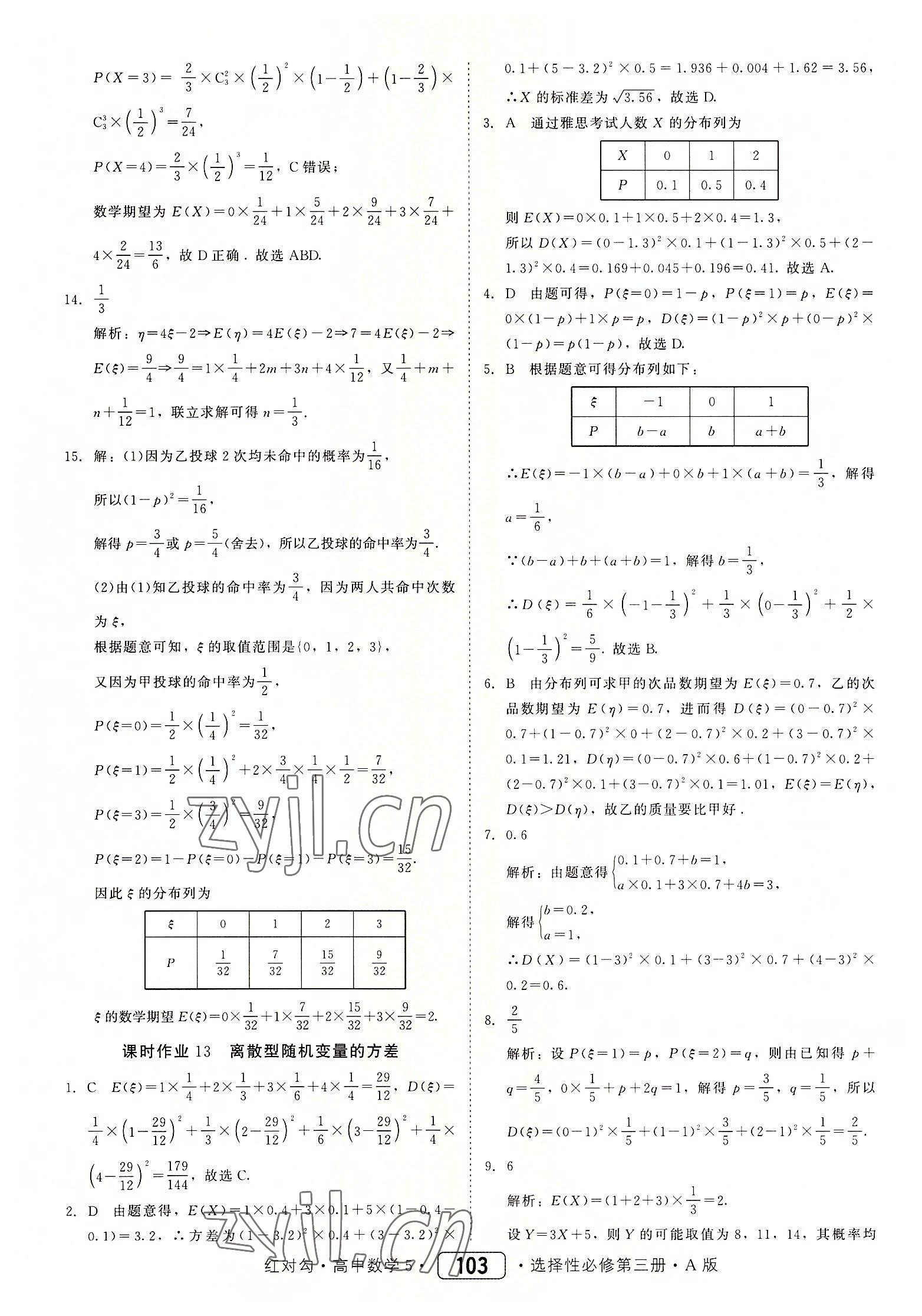 注:目前有些书本章节名称可能整理的还不是很完善,但都是按照顺序排列的,请同学们按照顺序仔细查找。练习册 2022年红对勾45分钟作业与单元评估高中数学选择性必修第三册人教版 答案主要是用来给同学们做完题方便对答案用的,请勿直接抄袭。