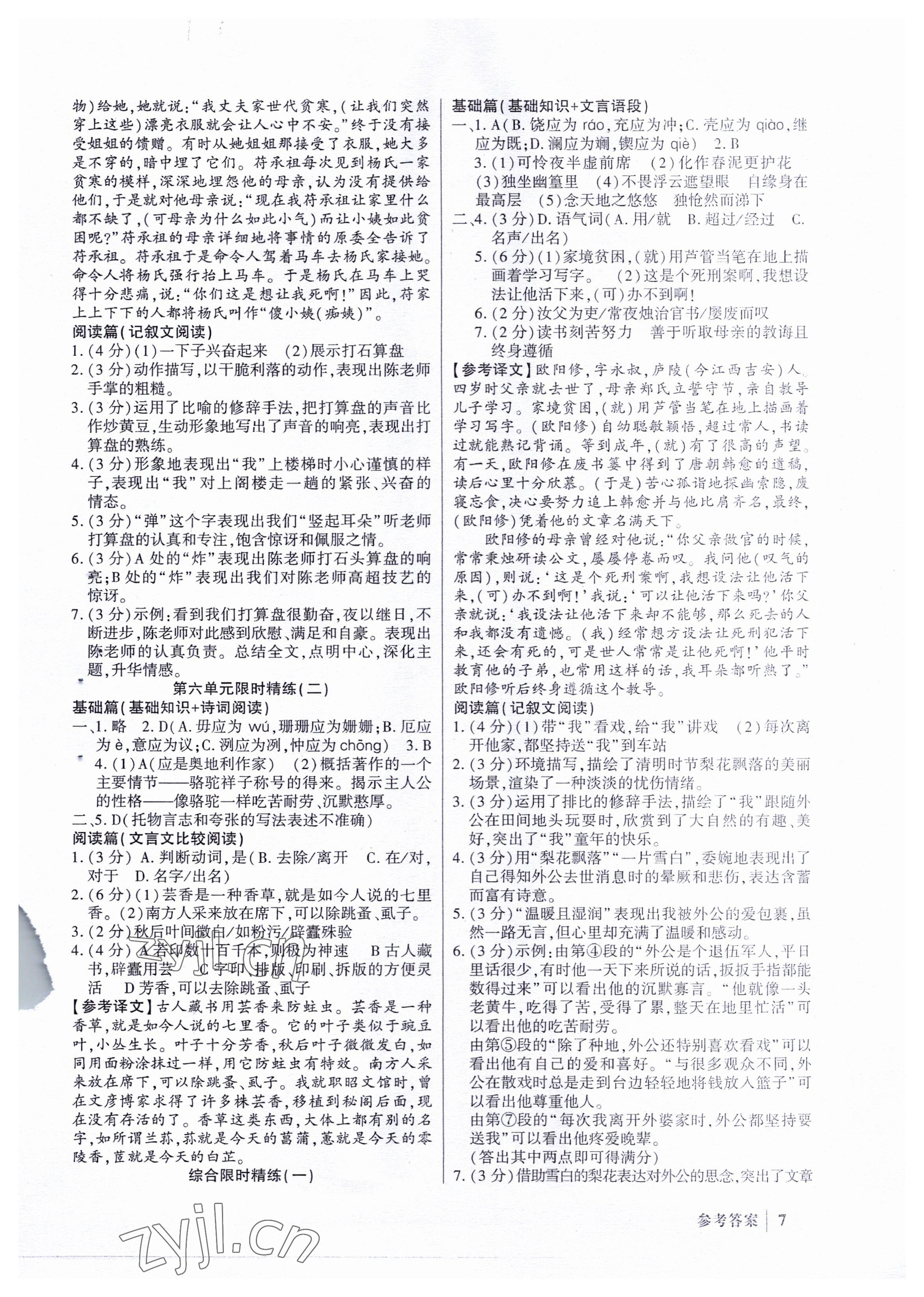 注:目前有些书本章节名称可能整理的还不是很完善,但都是按照顺序排列的,请同学们按照顺序仔细查找。练习册 2022年直通中考专项训练限时精练七年级语文下册 答案主要是用来给同学们做完题方便对答案用的,请勿直接抄袭。