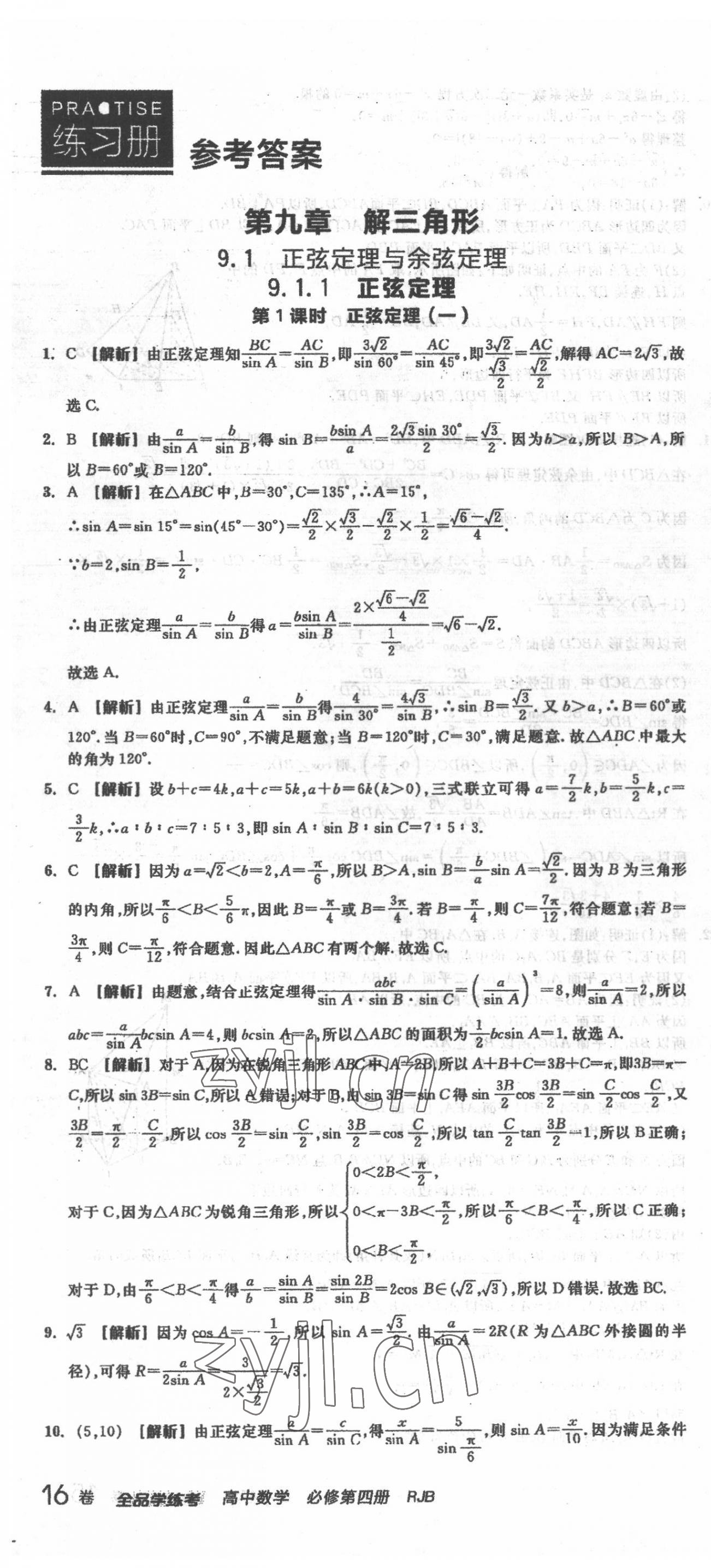 注:目前有些书本章节名称可能整理的还不是很完善,但都是按照顺序排列的,请同学们按照顺序仔细查找。练习册 2022年高中全品学练考数学必修第四册人教版 答案主要是用来给同学们做完题方便对答案用的,请勿直接抄袭。