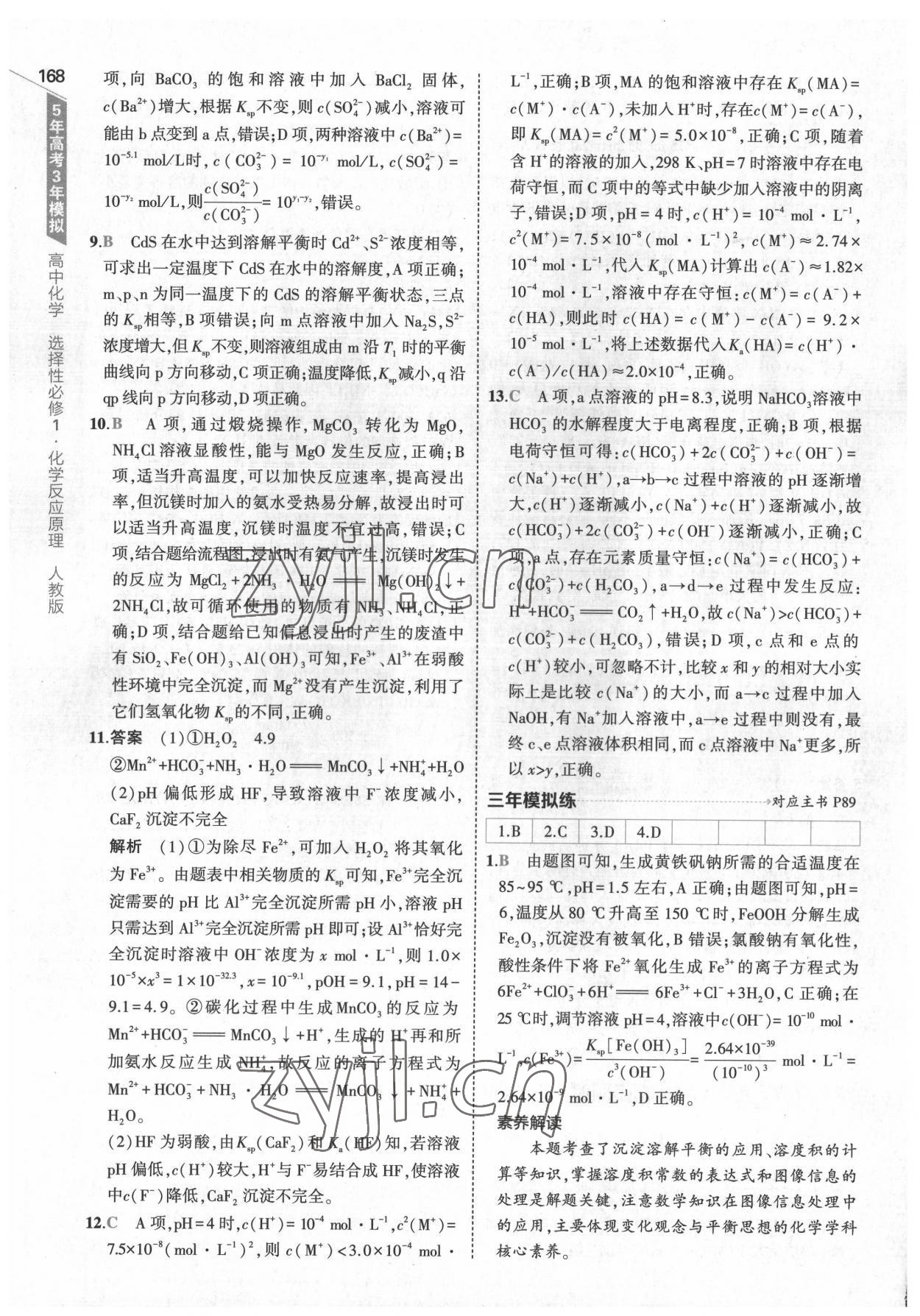 注:目前有些书本章节名称可能整理的还不是很完善,但都是按照顺序排列的,请同学们按照顺序仔细查找。练习册 2022年5年高考3年模拟高中化学选择性必修1化学反应原理人教版 答案主要是用来给同学们做完题方便对答案用的,请勿直接抄袭。