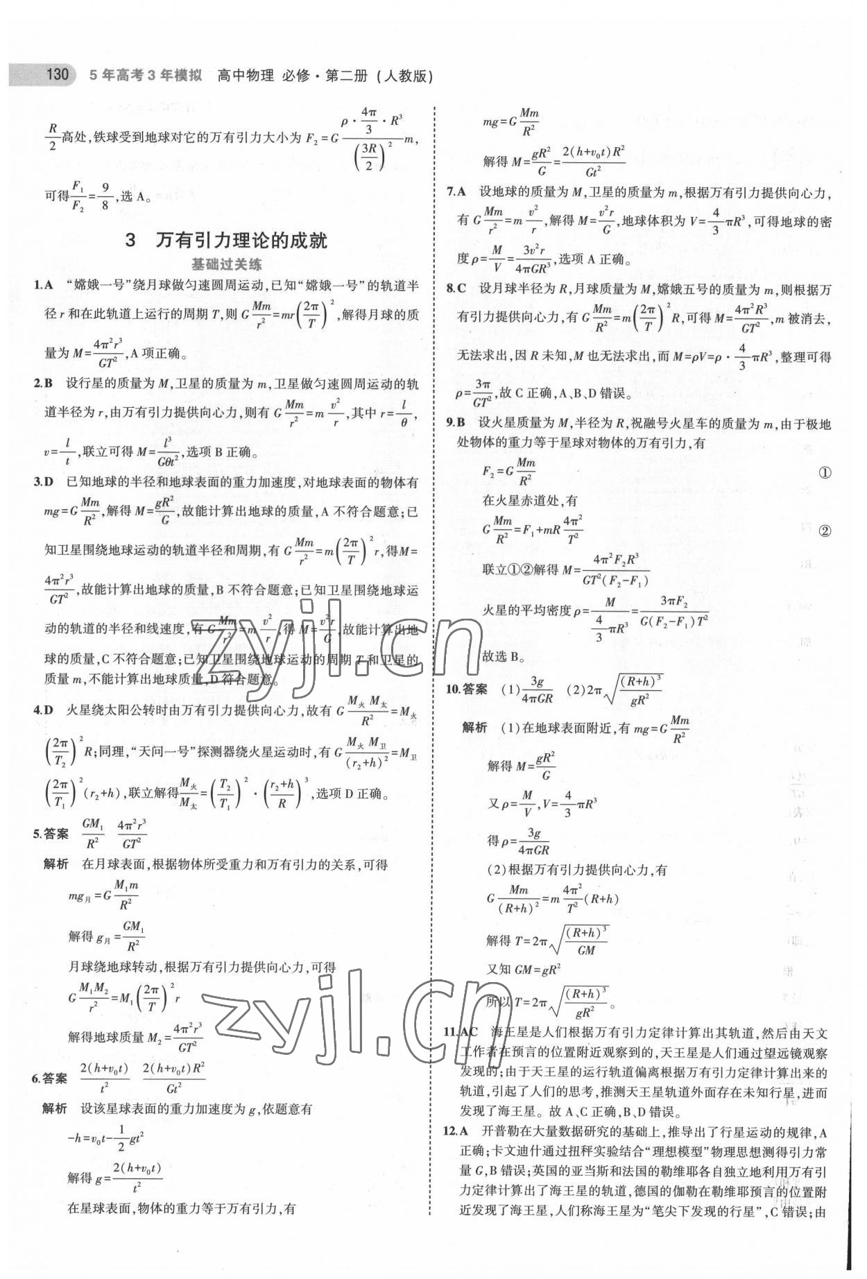 2022年5年高考3年模拟高中物理必修第二册人教版