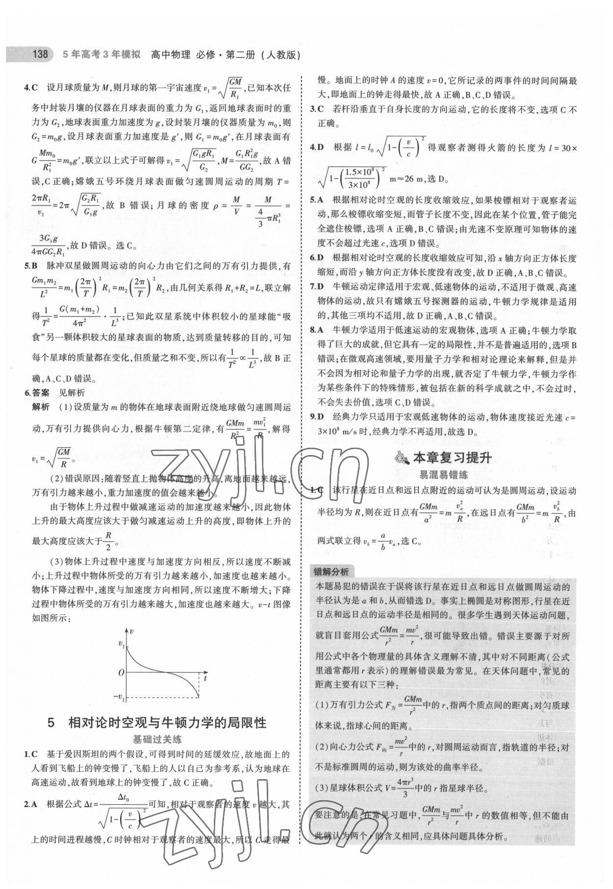 2022年5年高考3年模拟高中物理必修第二册人教版
