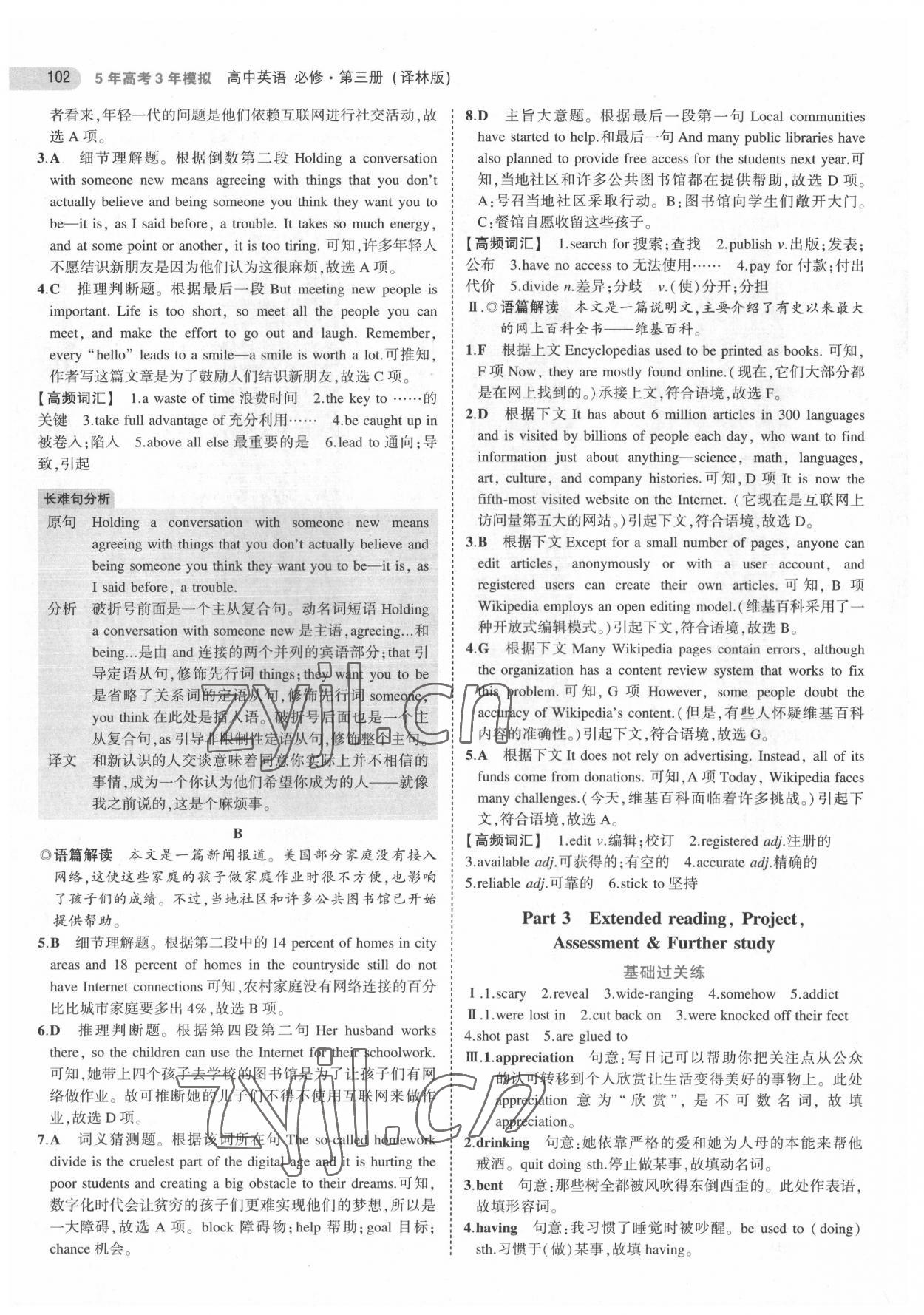 注:目前有些书本章节名称可能整理的还不是很完善,但都是按照顺序排列的,请同学们按照顺序仔细查找。练习册 2022年5年高考3年模拟英语必修第三册译林版 答案主要是用来给同学们做完题方便对答案用的,请勿直接抄袭。