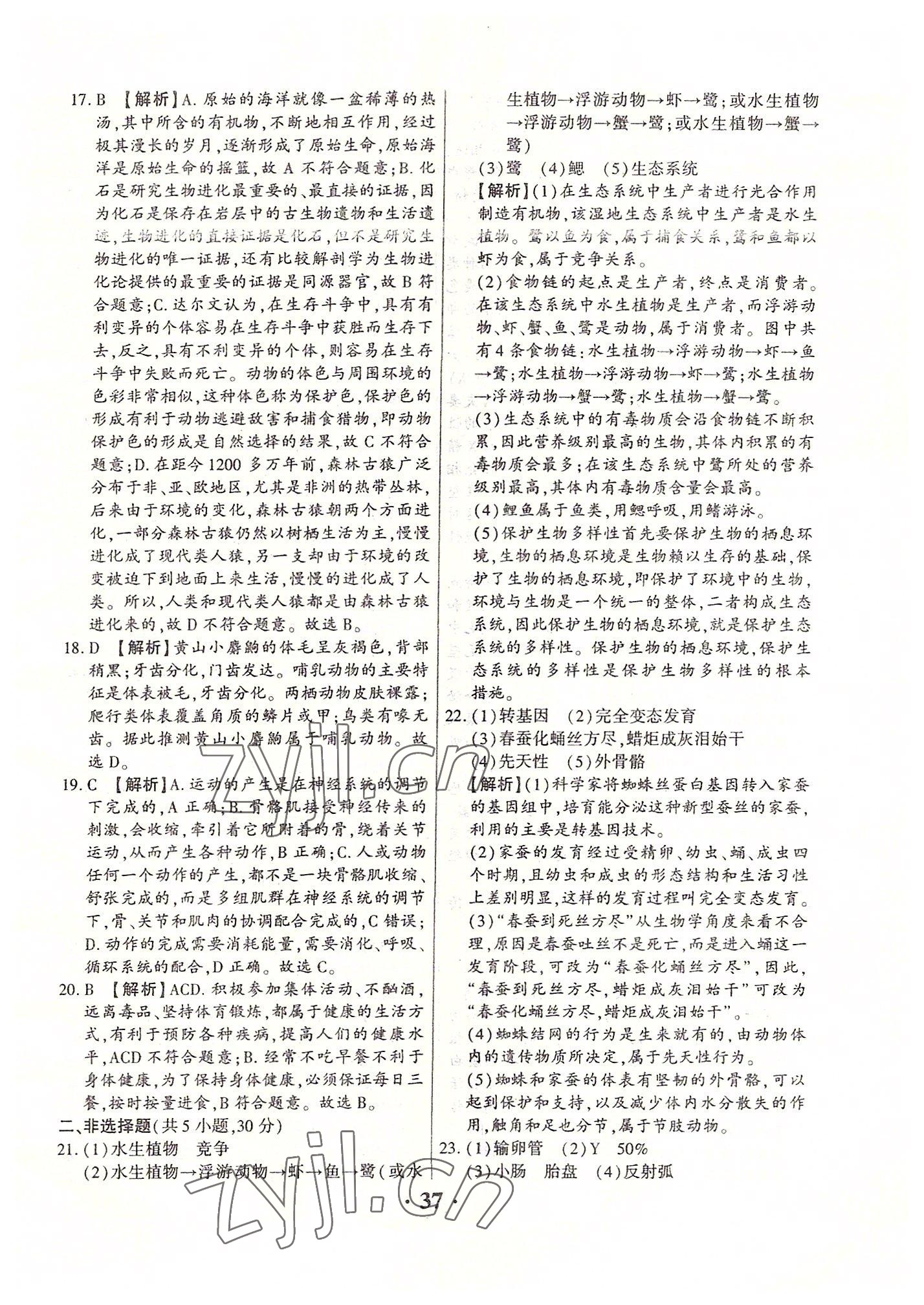 注:目前有些书本章节名称可能整理的还不是很完善,但都是按照顺序排列的,请同学们按照顺序仔细查找。练习册 2022年中考对策生物北师大版河南专版 答案主要是用来给同学们做完题方便对答案用的,请勿直接抄袭。