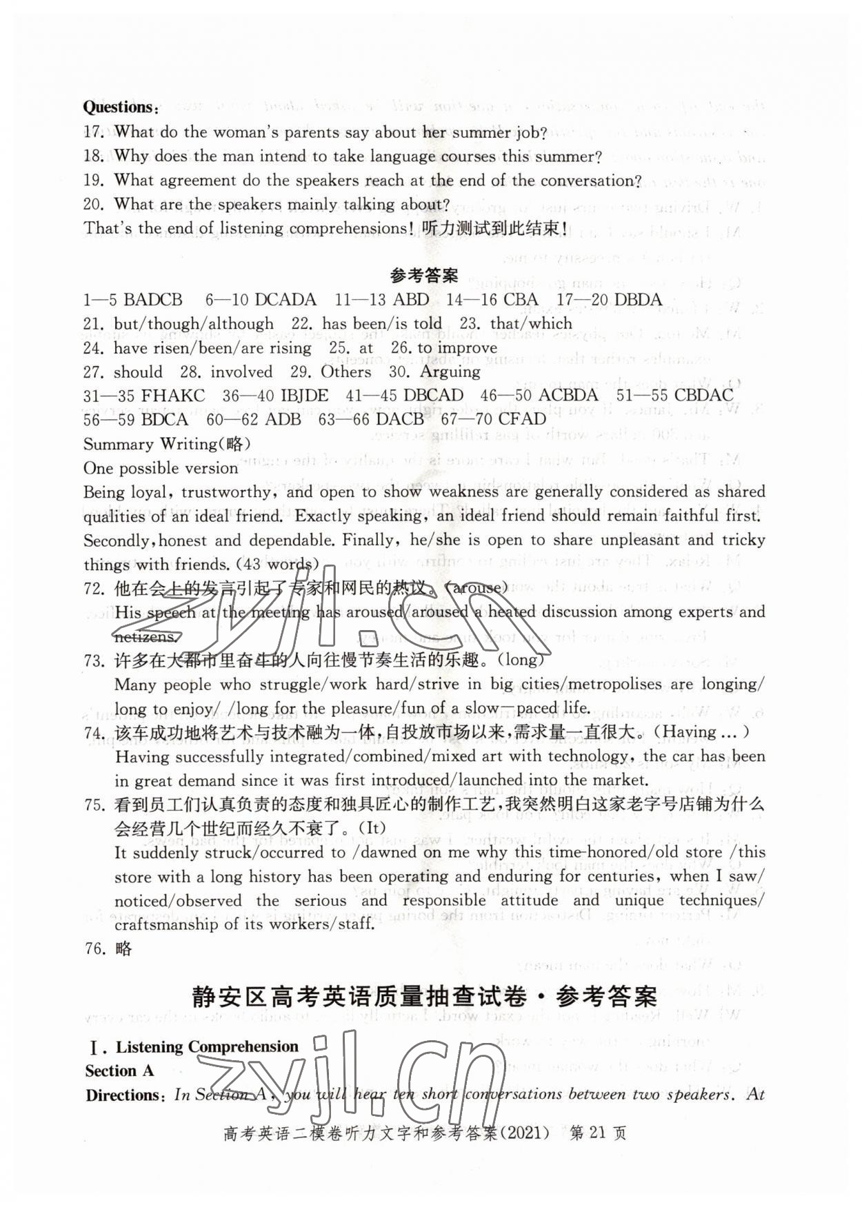 参考答案第21页